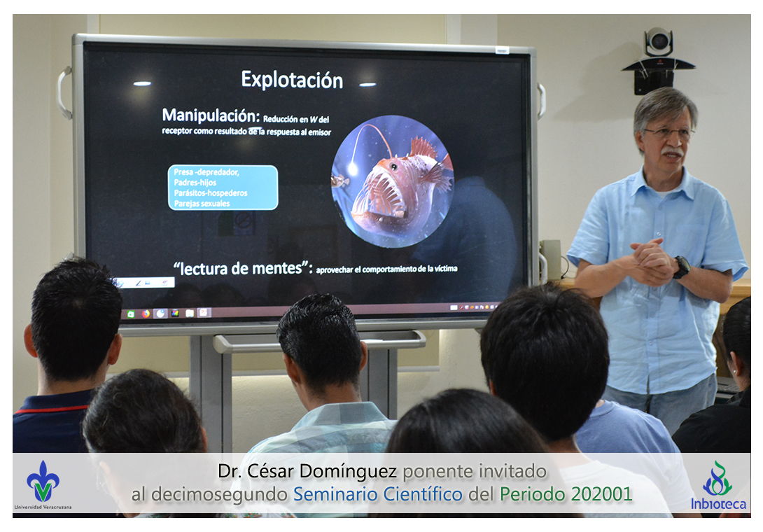 25 de octubre de 2019.- En el "Aula de Usos Múltiples" del INBIOTECA se realizó el decimosegundo Seminario Científico para los estudiantes de posgrado Doctorado en Ciencias en Ecología y Biotecnología del ciclo Seminarios Científicos y Docencia 2019 (Periodo 202001).
