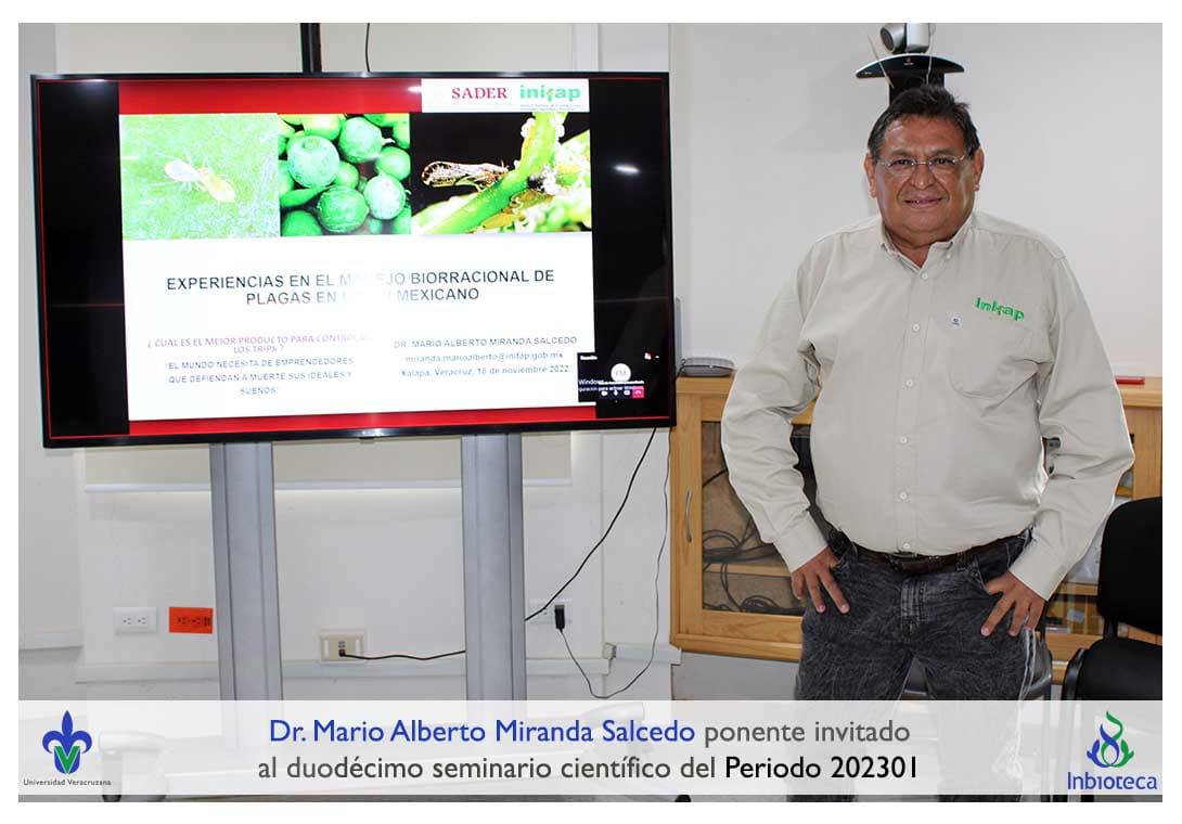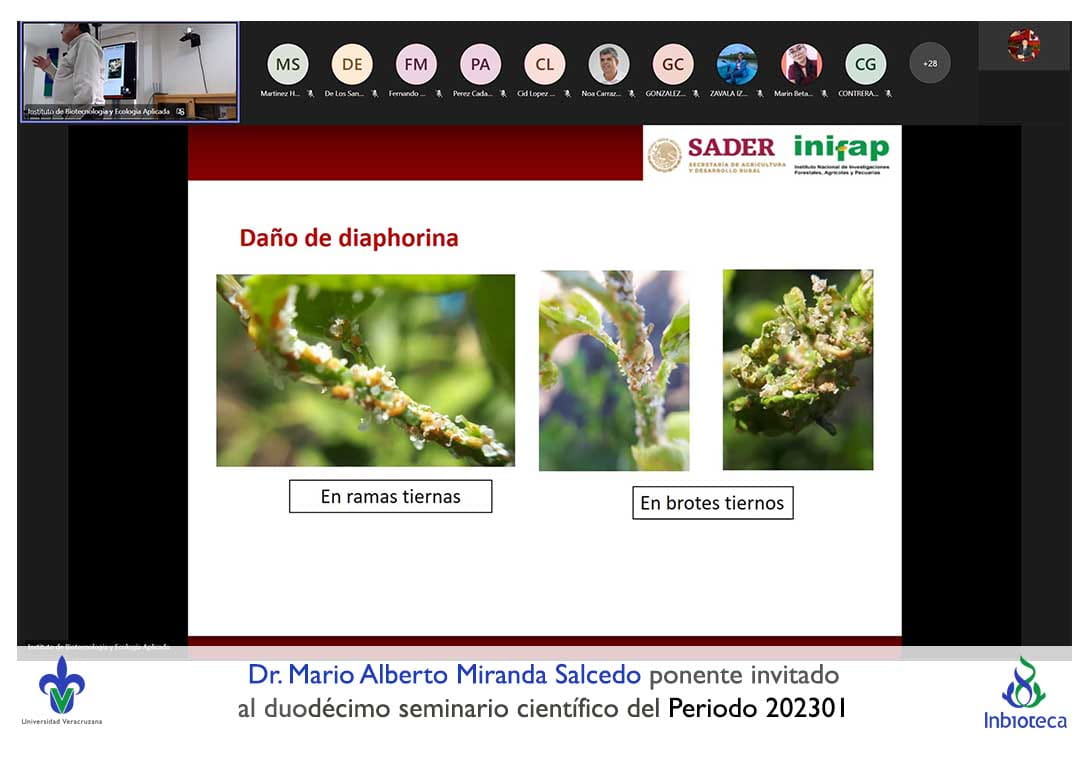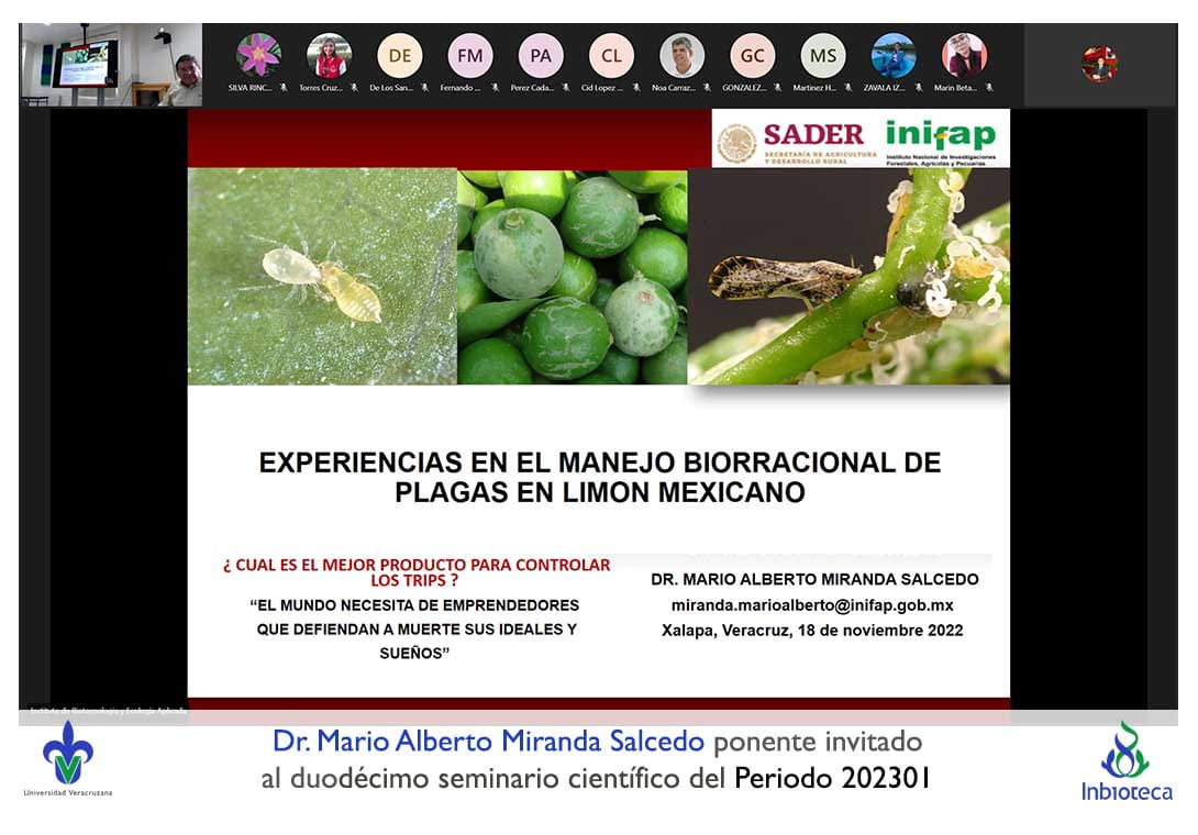 El seminario se desarrolló con la participación del Dr. Mario Alberto Miranda Salcedo Investigador del Instituto Nacional de Investigaciones Forestales, Agrícolas y Pecuarias (INIFAP) en el programa de Entomología del Centro de Investigación Regional Pacifico Centro, Campo Experimental Valle de Apatzingán. La conferencia se tituló: Experiencias en el manejo biorracional de plagas en limón mexicano.