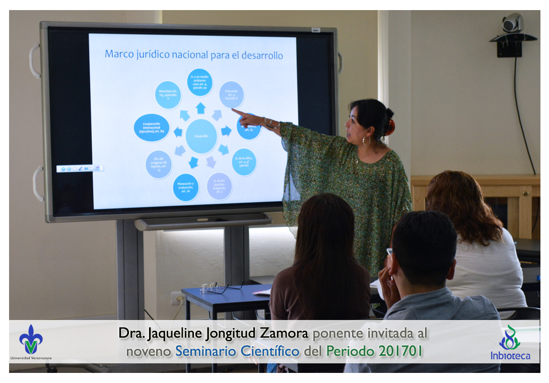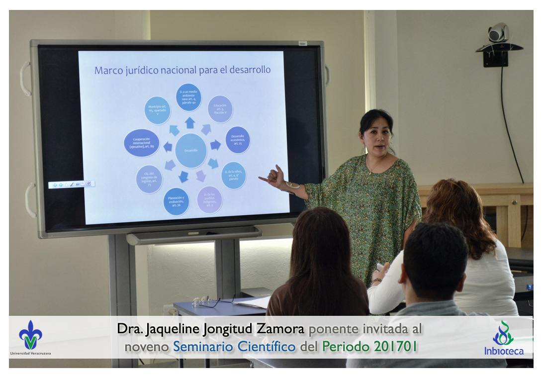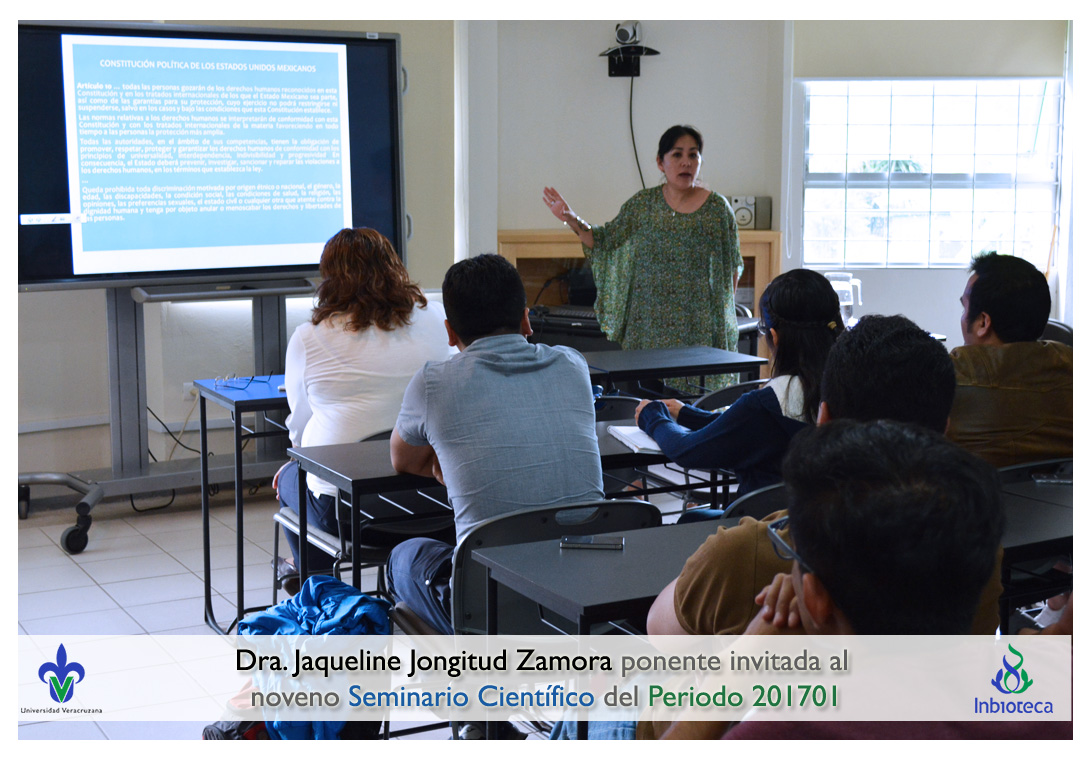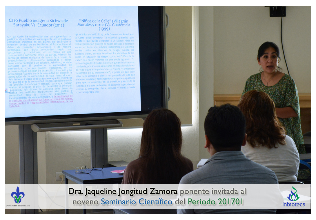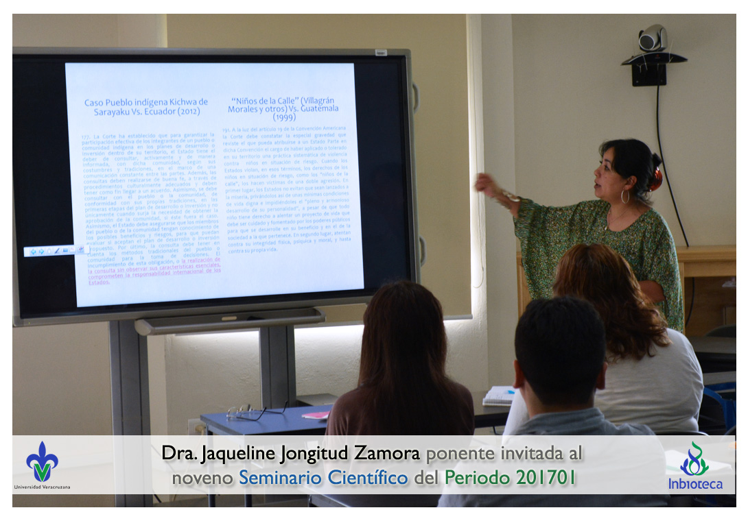 La ponente invitada fue la Dra. Jaqueline Jongitud Zamora Investigadora del Centro de Estudios sobre Derecho, Globalización y Seguridad (CEDEGS) de la Universidad veracruzana. La conferencia impartida fue "El derecho al desarrollo como derecho de los pueblos y de las personas".