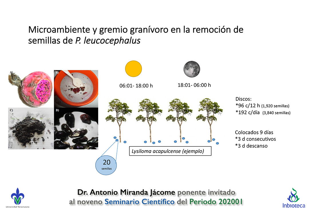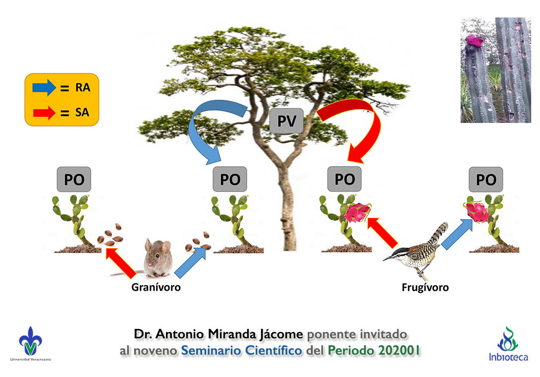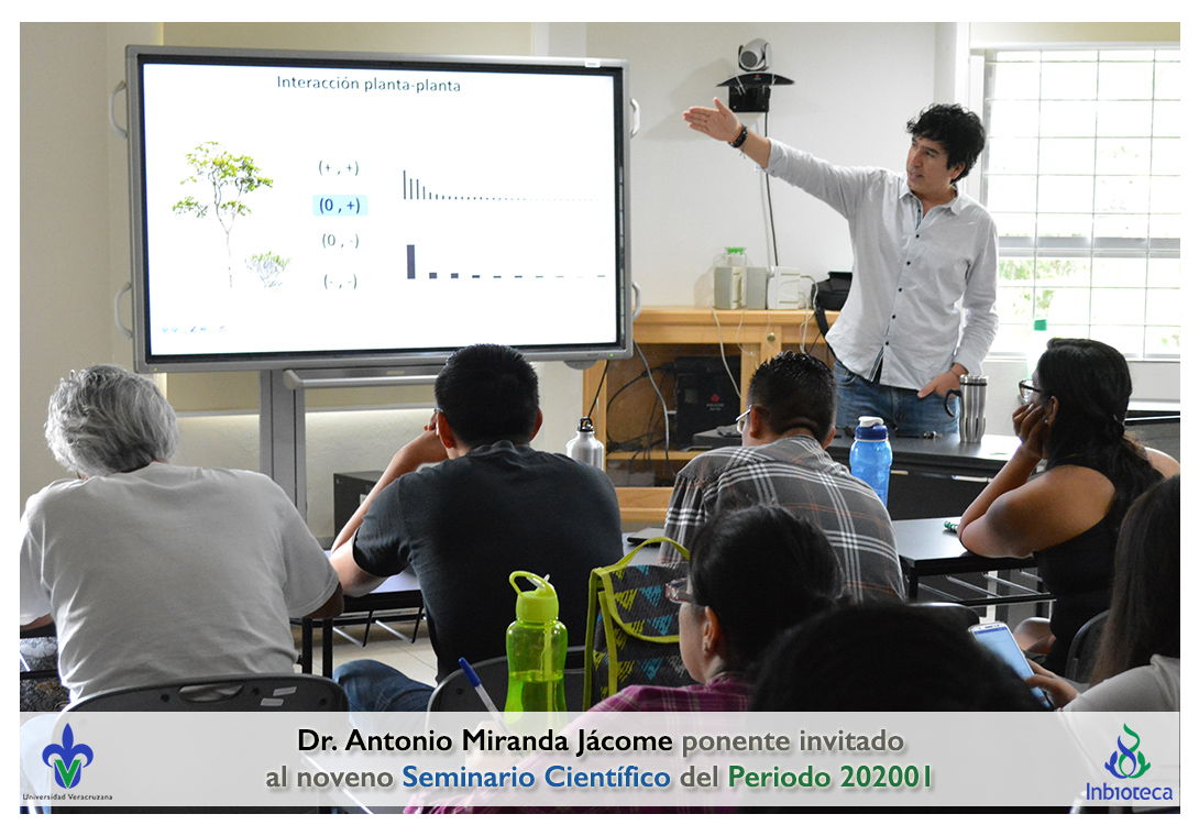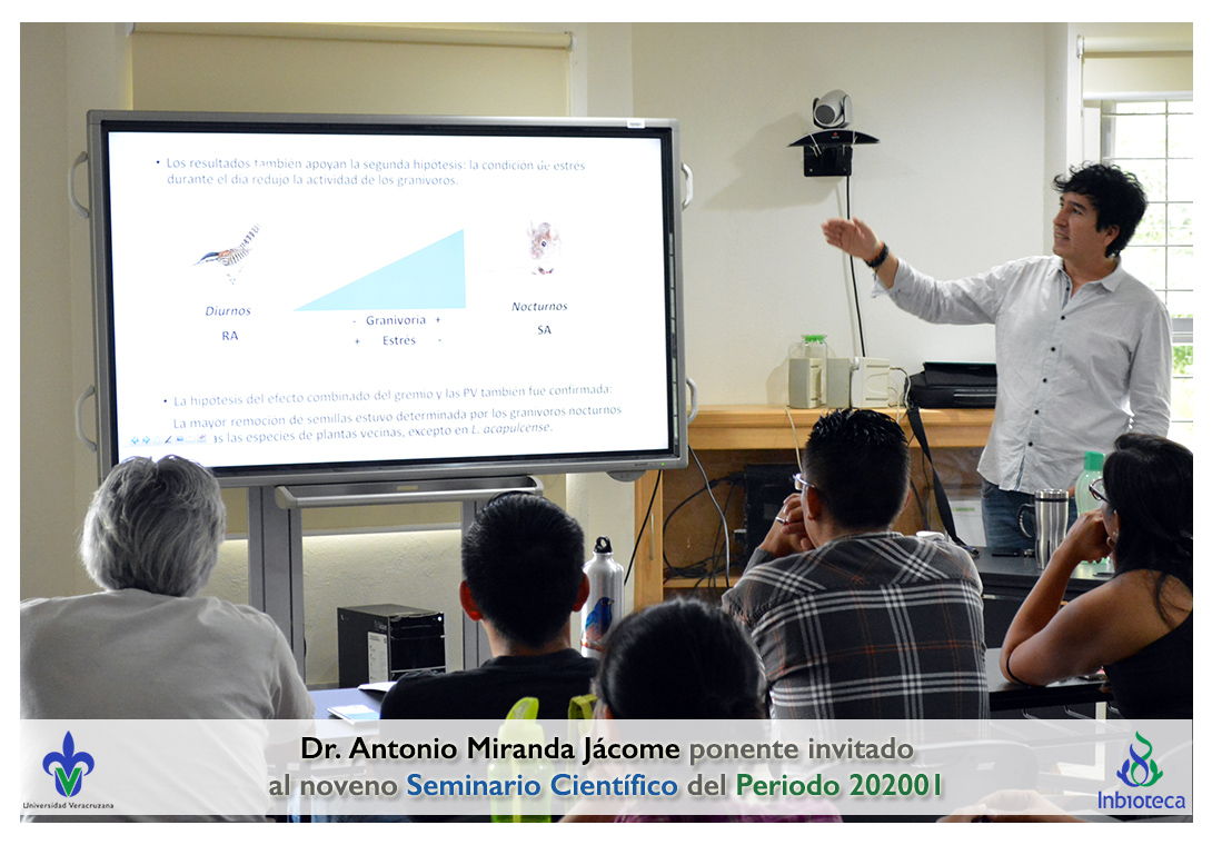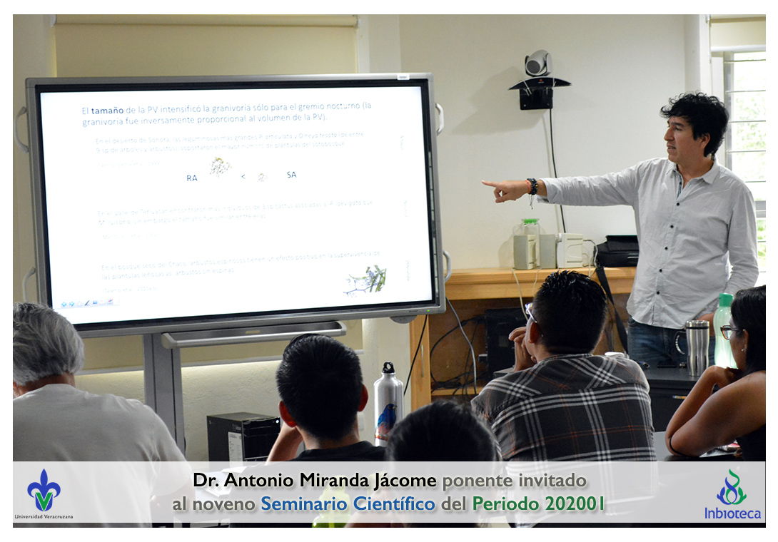 El ponente invitado fue el Dr. Antonio Miranda Jácome académico/investigador del Instituto de investigaciones Biológicas de la Universidad Veracruzana. La conferencia impartida fue "Interacción planta-planta-animal en el patrón de granivoría de un cacto columnar".