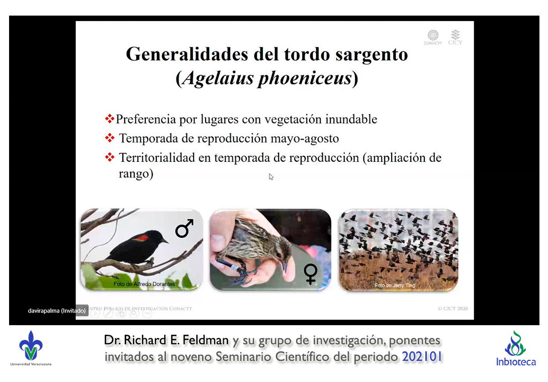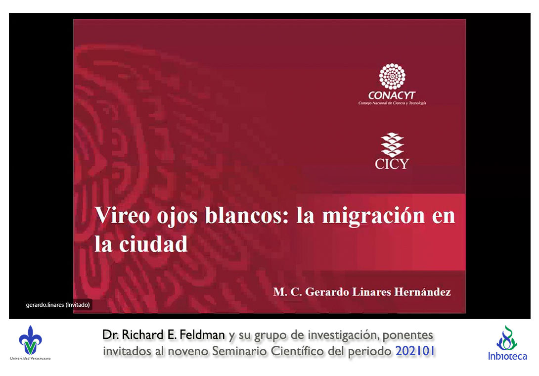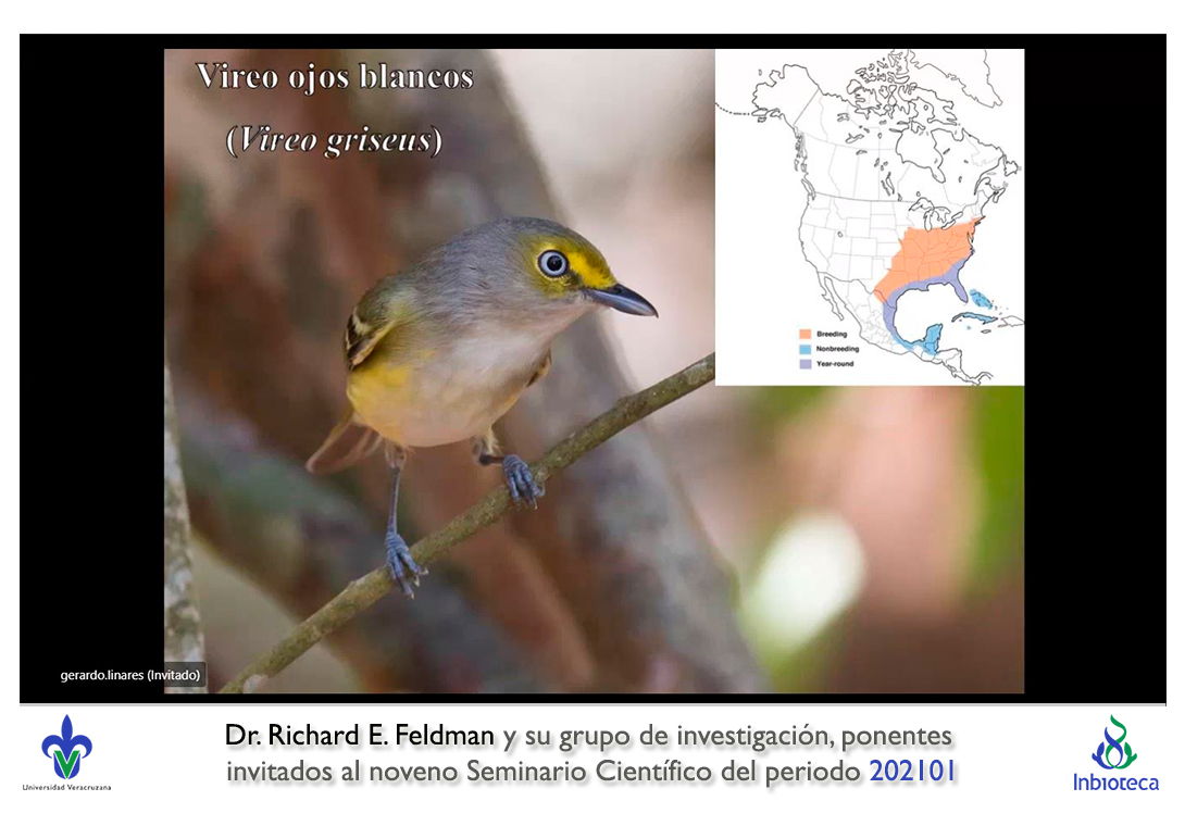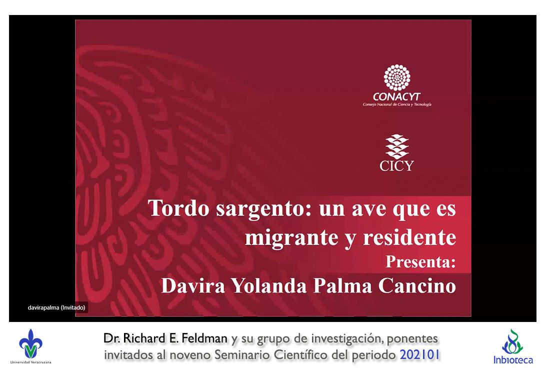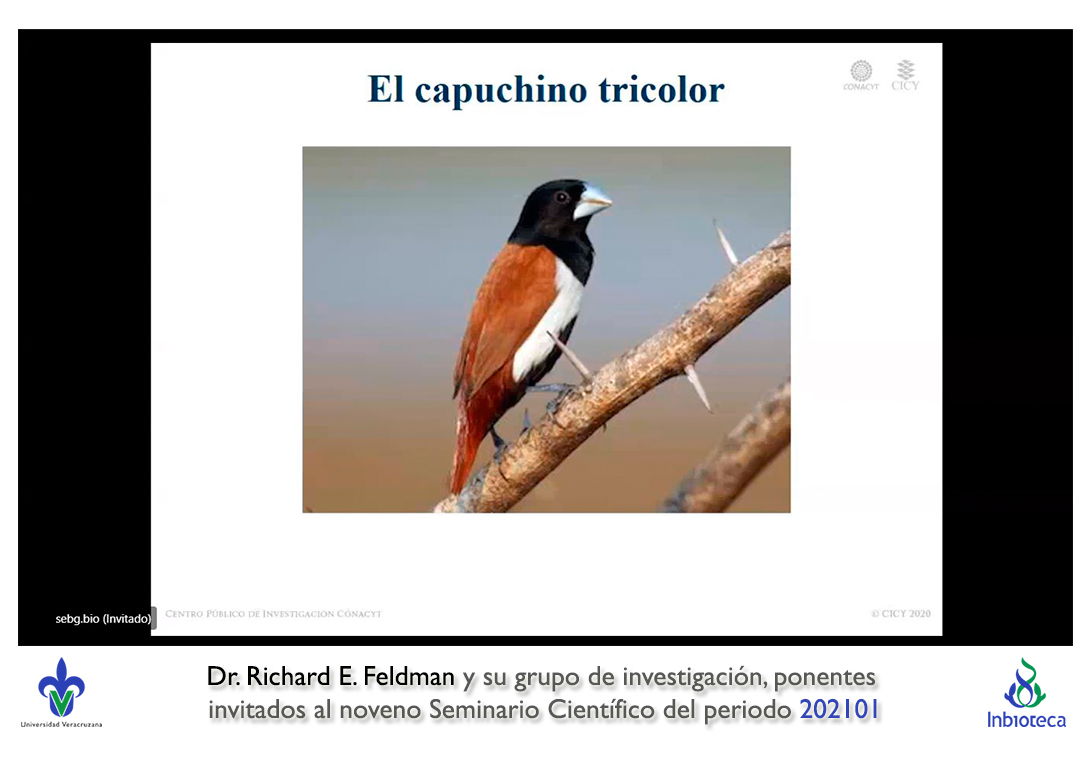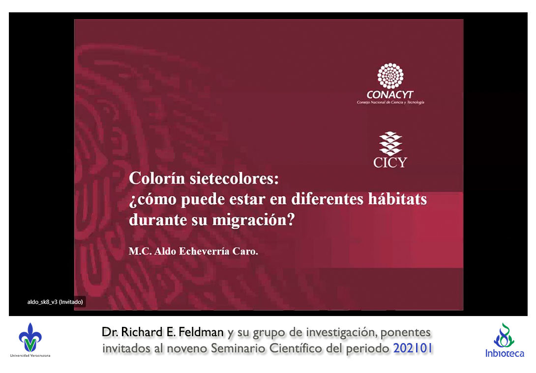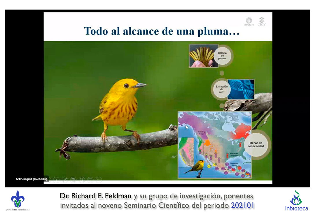 27 de noviembre de 2020.- En el "Aula Virtual" del INBIOTECA se realizó el noveno Seminario Científico para los estudiantes de posgrado Doctorado en Ciencias en Ecología y Biotecnología del ciclo Seminarios Científicos y Docencia 2020 (Periodo 202101). El ponente invitado fue el Dr. Richard E. Feldman de la Unidad de Recursos Naturales del Centro de Investigación Científica de Yucatán en Mérida, Yucatán, México. La conferencia impartida fue "La migración de aves: una historia contada por las especies que visitan la Península de Yucatán".