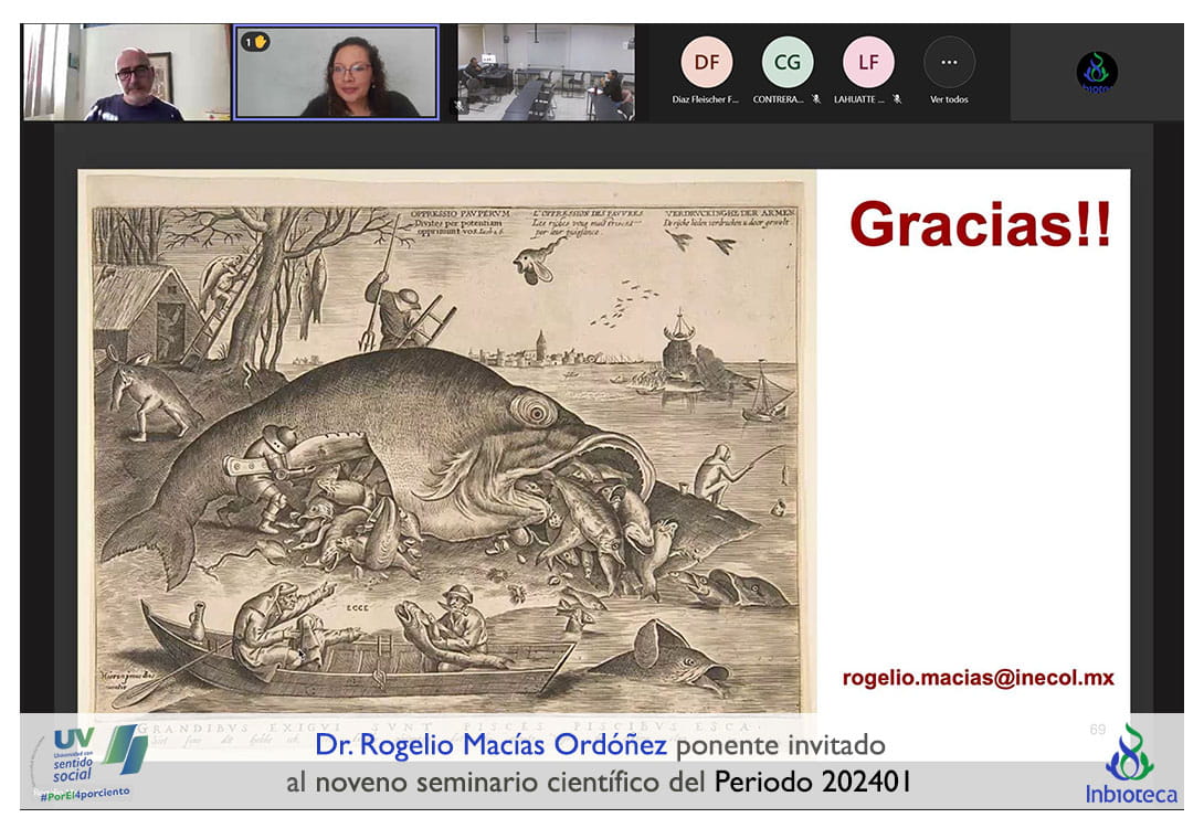 El seminario se desarrolló con la participación del Dr. Rogelio Macías Ordóñez Investigador de la Red de Biología Evolutova del Instituto de Ecología A. C. (INECOL). La conferencia se tituló: Ecología Evolutiva y Sustentabilidad.