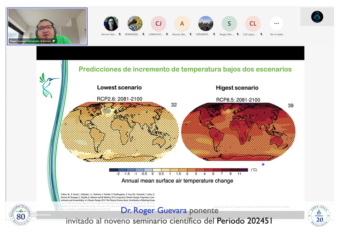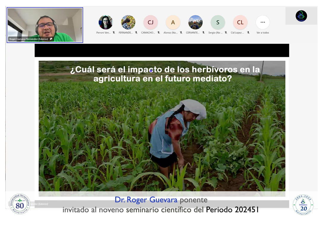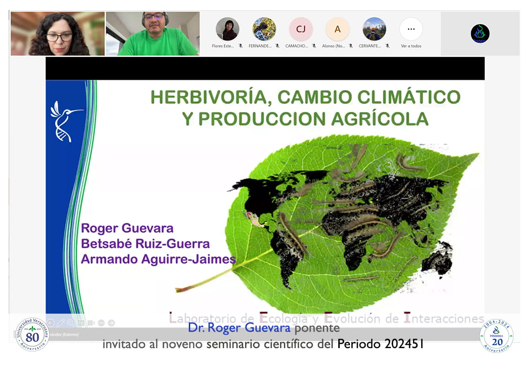 El seminario se desarrolló con la participación del Dr. Roger Guevara Investigador de la Red de Biología Evolutiva del Instituto de Ecología A. C. (INECOL). La conferencia se tituló: Herbivoría, cambio climático y producción agrícola.