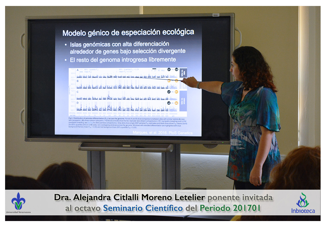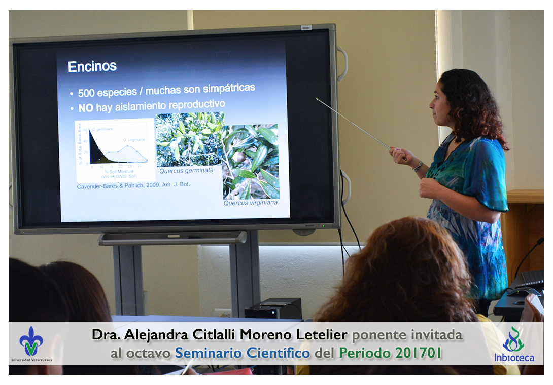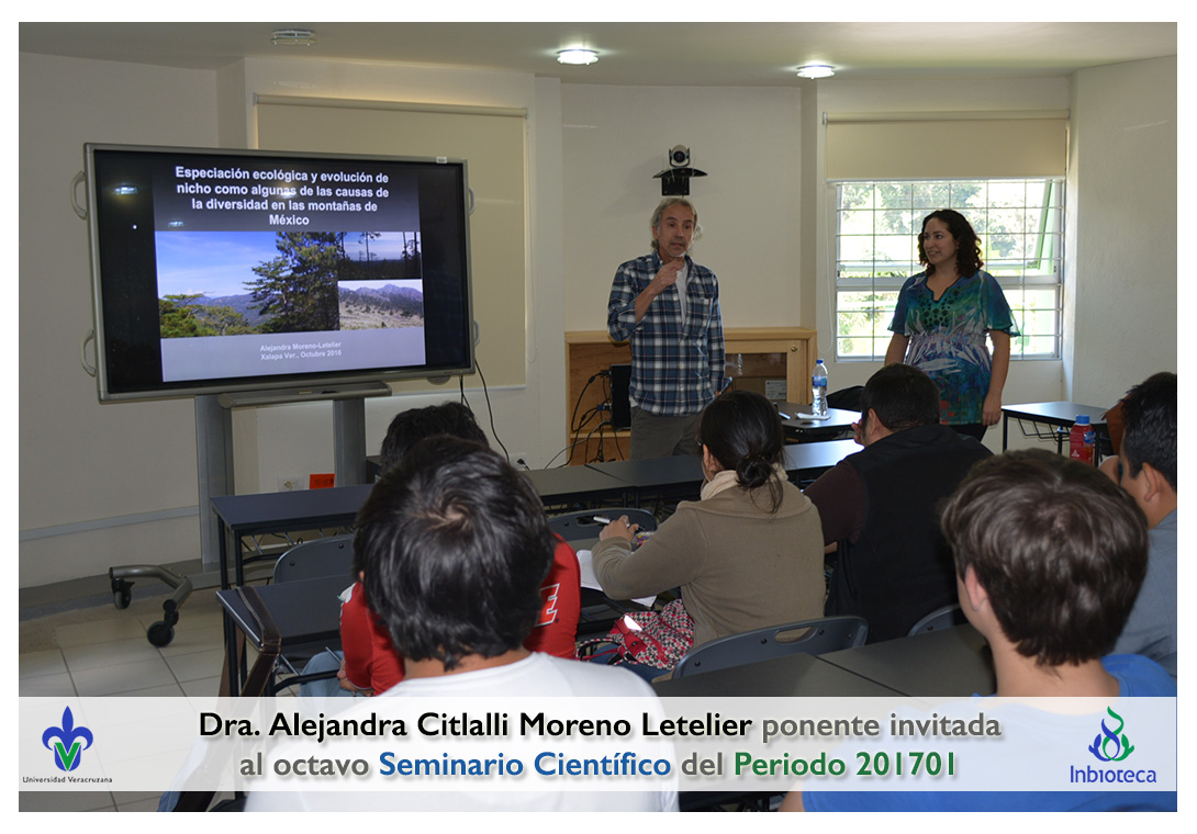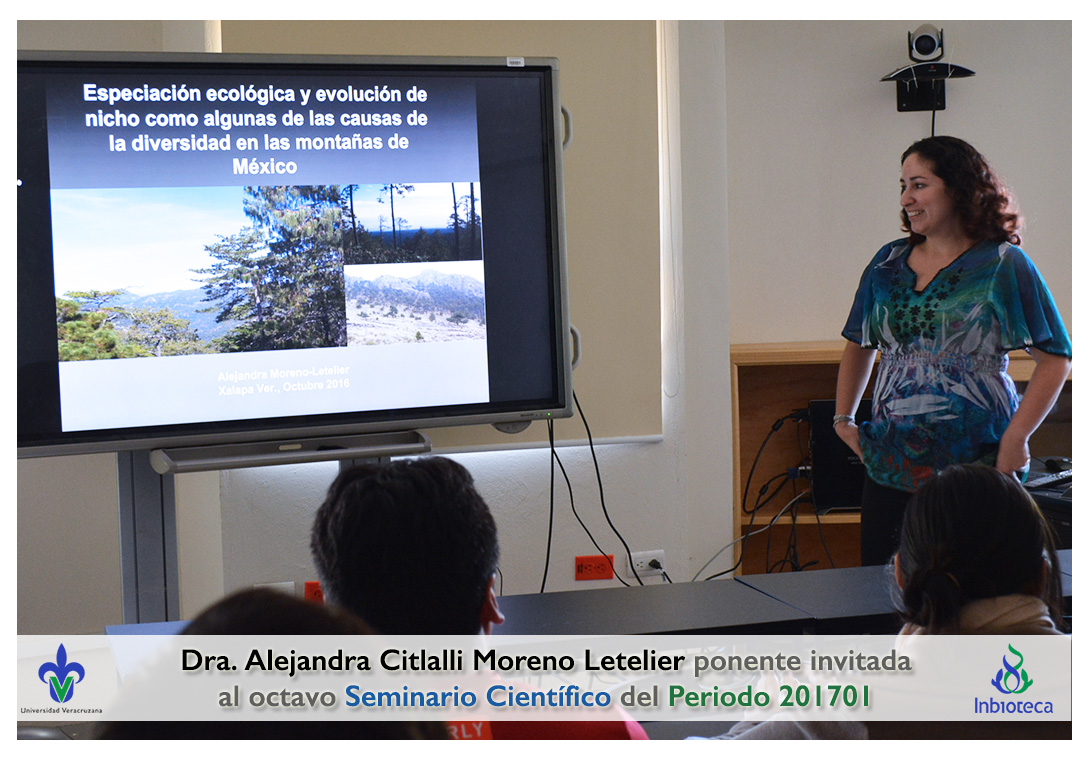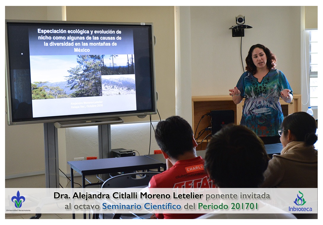 La ponente invitada fue la Dra. Alejandra Citlalli Moreno-Letelier Profesora del Instituto de Biología de la Universidad Nacional Autónoma de México. La conferencia impartida fue "Especiación ecológica y evolución de nicho como algunas de las causas de la diversidad en las montañas de México".