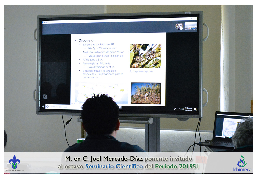 El ponente invitado fue el M. en C. Joel Mercado-Díaz adscrito al departamento Science & Education de The Field Museum, Chicago, United States of America. La conferencia impartida fue a través de videoconferencia y se tituló: "Pasado, presente y futuro de la liquenología Caribeña".