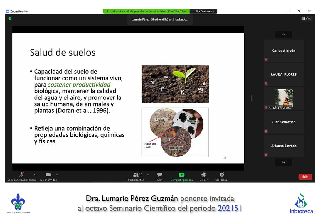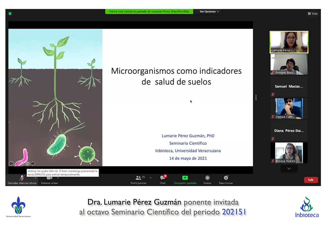 El seminario se realizó con la participación de la Dra. Lumarie Pérez Guzmán científica de suelos, consultora e investigadora independiente. La conferencia se tituló Microorganismos como indicadores de salud de suelos.