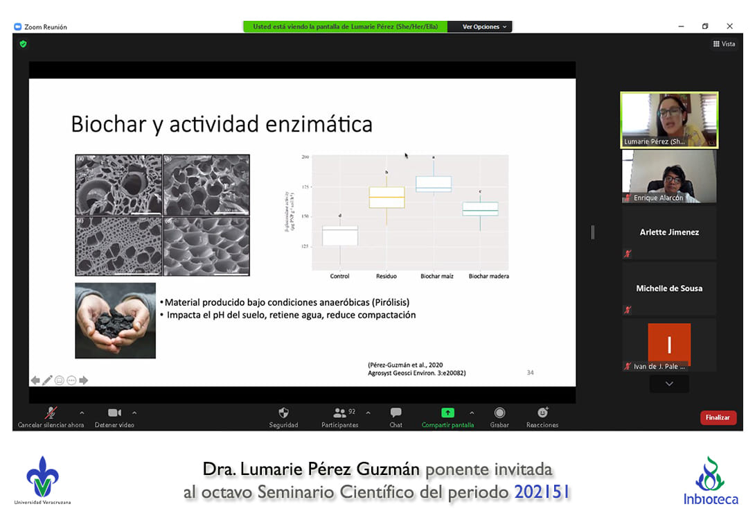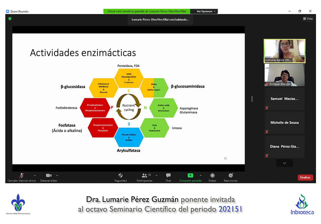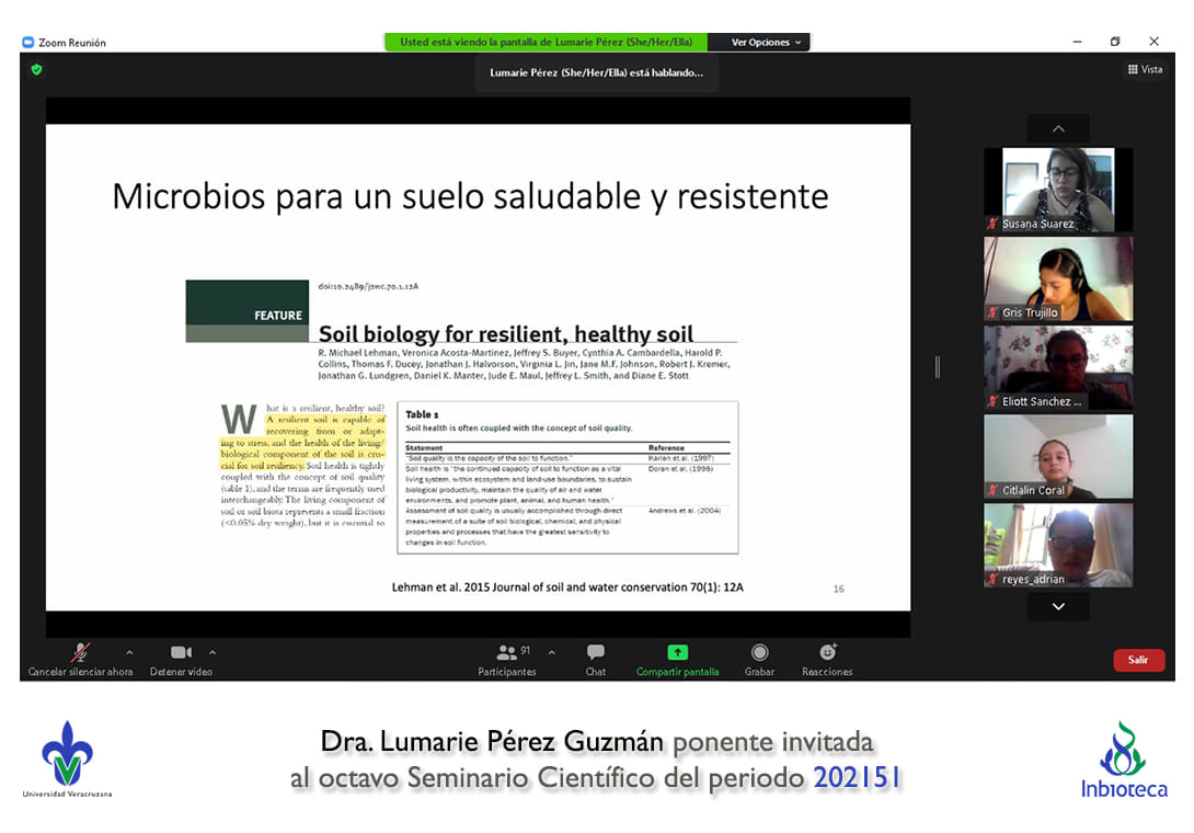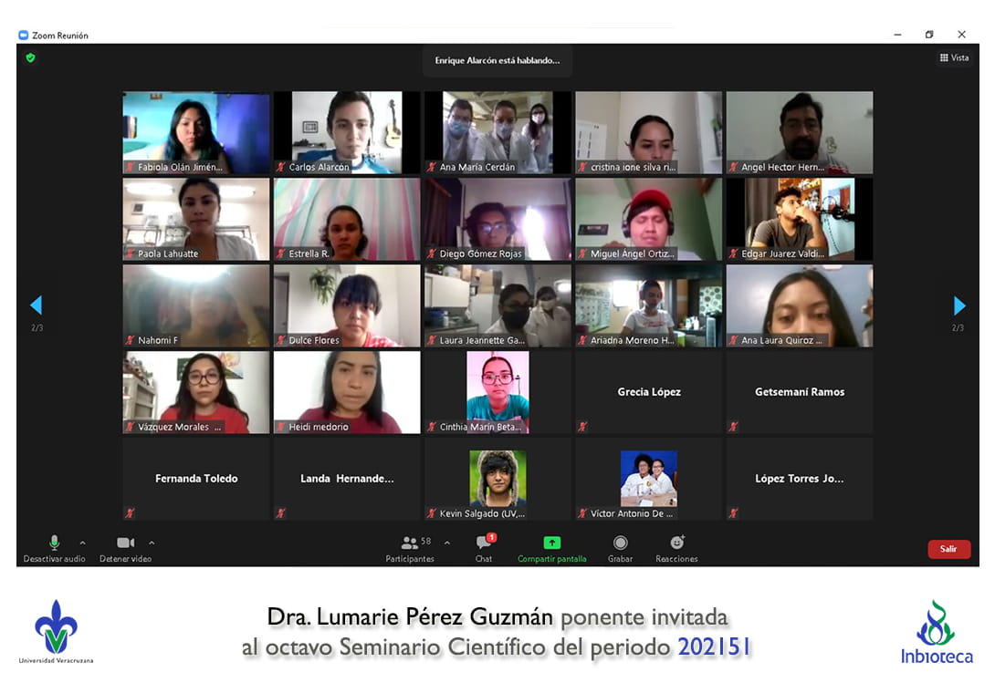 14 de mayo de 2021.- En el "Aula Virtual" del INBIOTECA se realizó el octavo Seminario Científico para los estudiantes del programa de Doctorado en Ciencias en Ecología y Biotecnología (PNPC: Competencia Internacional) del ciclo Seminarios Científicos y Docencia 2021 del Periodo 202151 (febrero – julio 2021).
