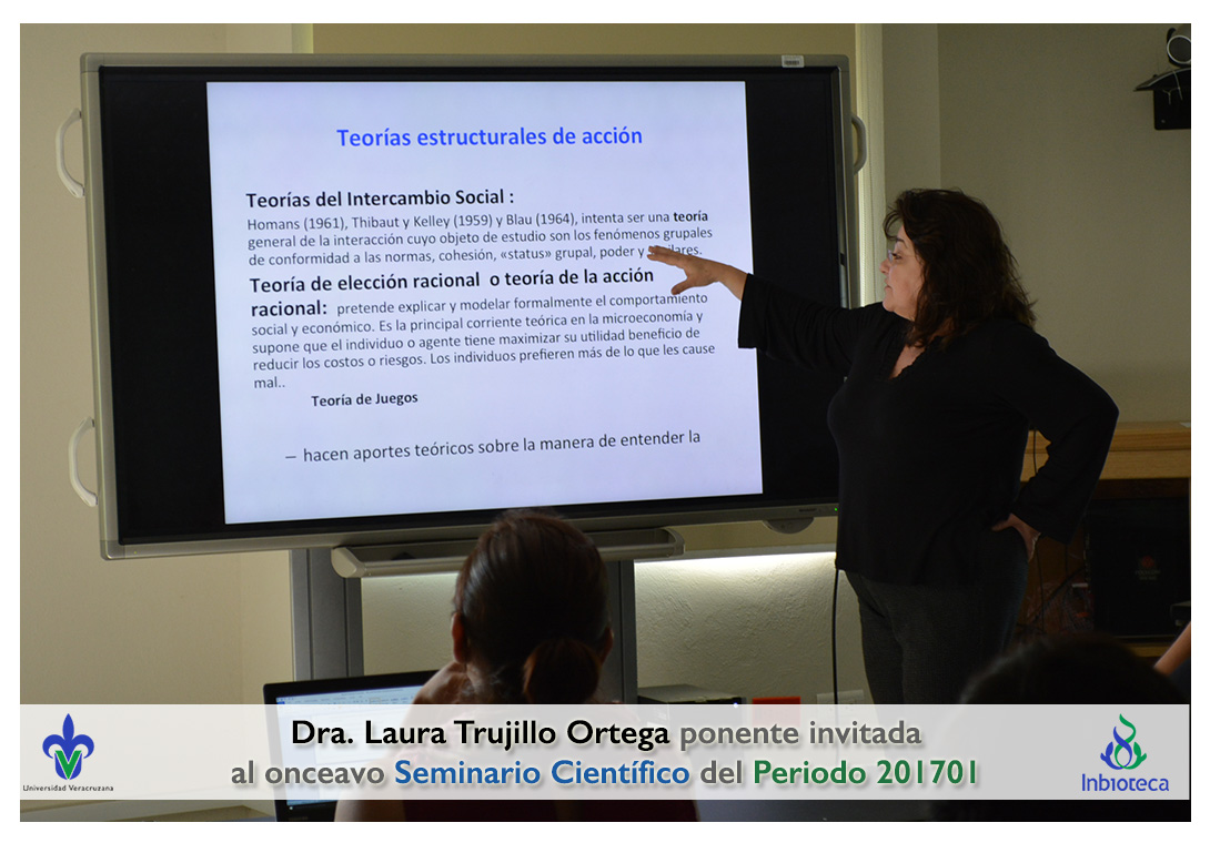 La ponente invitada fue la Dra. Laura Trujillo Ortega Investigadora de las Redes Agroalimentarias del Instituto de Investigaciones sobre la Agricultura Regional y el Desarrollo Rural (IIAREDER) de la Universidad Autonoma de Chapingo. La conferencia impartida fue "El nuevo enfoque agroalimentario desde una perspectiva transdisciplinaria".