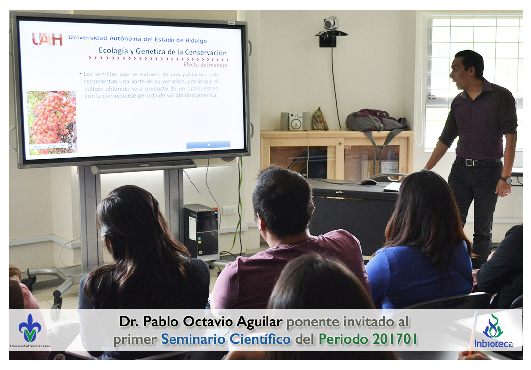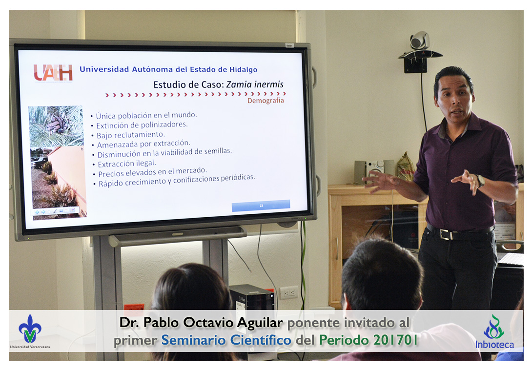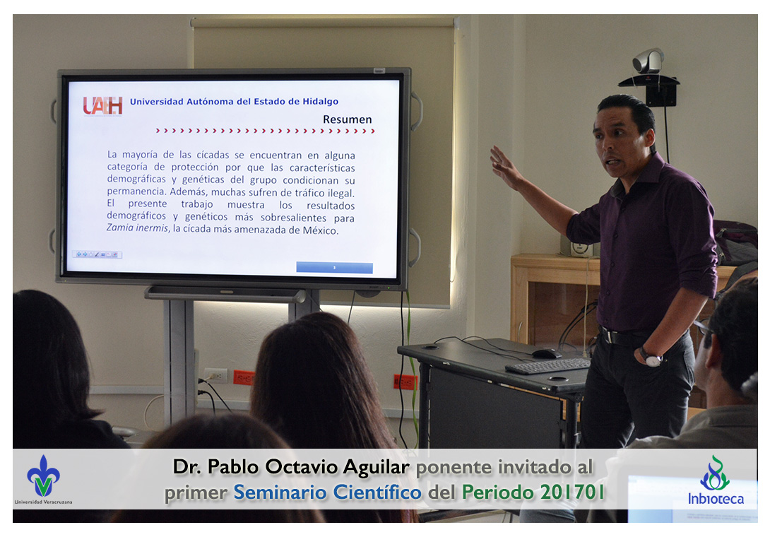 El profesor invitado fue el Dr. Pablo Octavio Aguilar Investigador titular de la Universidad Autónoma del Estado de Hidalgo. La conferencia impartida fue Ecología y Genética aplicadas para la conservación de la biodiversidad: El caso de Zamia inermis una especie endémica en extremo peligro de extinción.