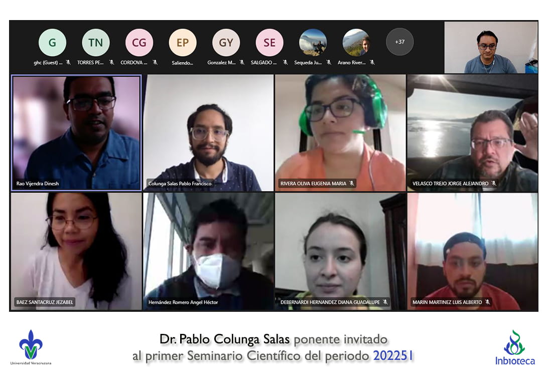 18 de febrero de 2022.- En el "Aula Virtual" del INBIOTECA se realizó el primer Seminario Científico para los estudiantes del programa de Doctorado en Ciencias en Ecología y Biotecnología (PNPC: Competencia Internacional) del ciclo Seminarios Científicos y Docencia 2022 del Periodo 202251 (febrero – julio 2022).