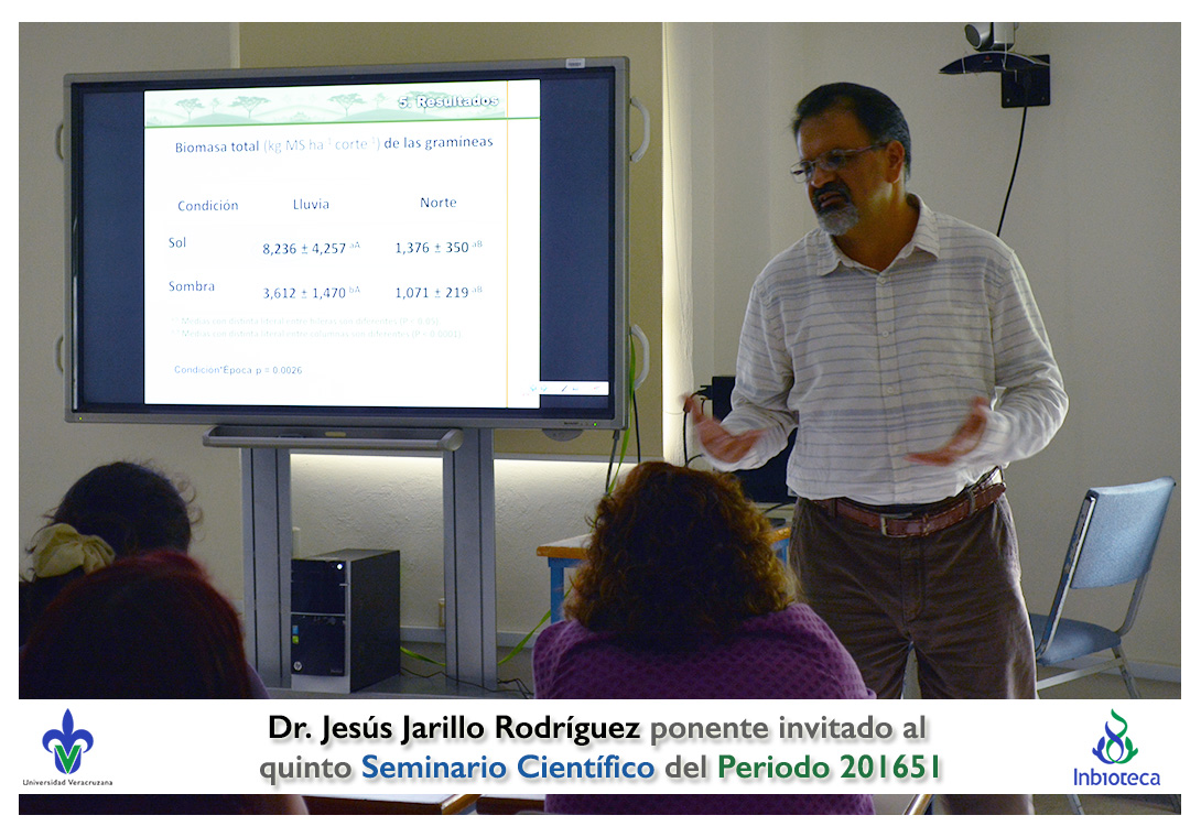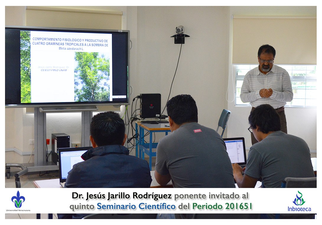 El profesor invitado fue el Dr. Jesús Jarillo Rodríguez investigador de la Facultad de Medicina Veterinaria y Zootecnia de la Universidad Nacional Autónoma de México (UNAM). La conferencia impartida fue Comportamiento fisiológico y productivo de cuatro gramíneas tropicales a la sombra de Melia azedarach L..