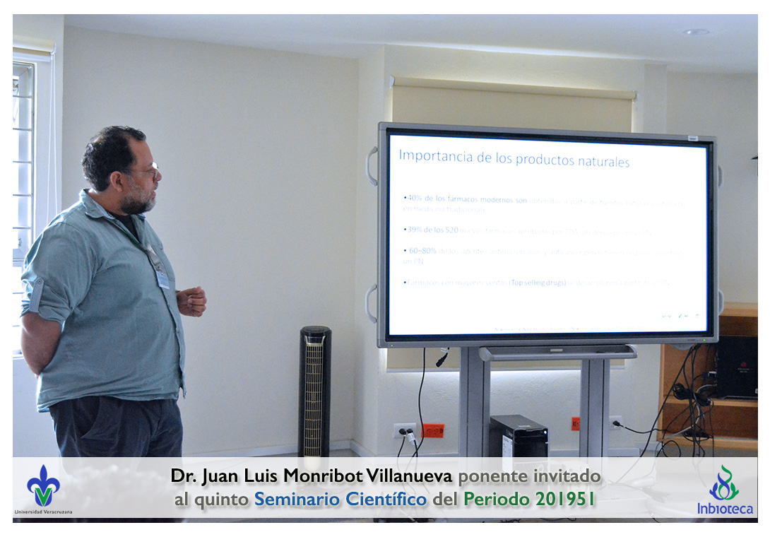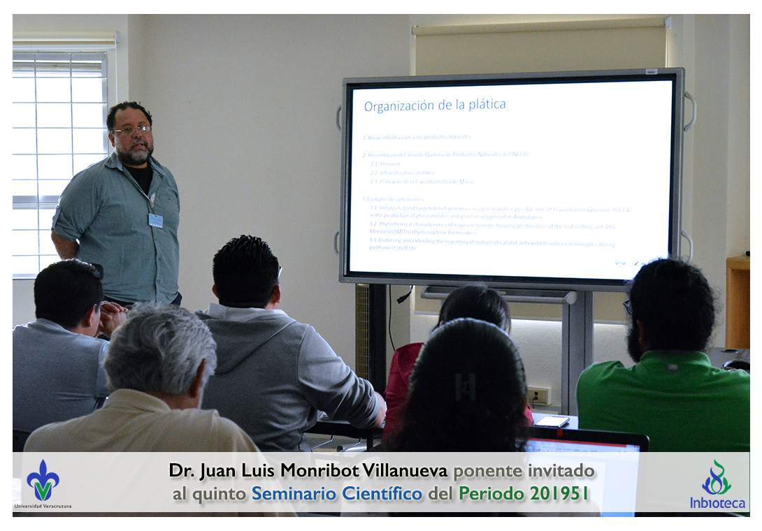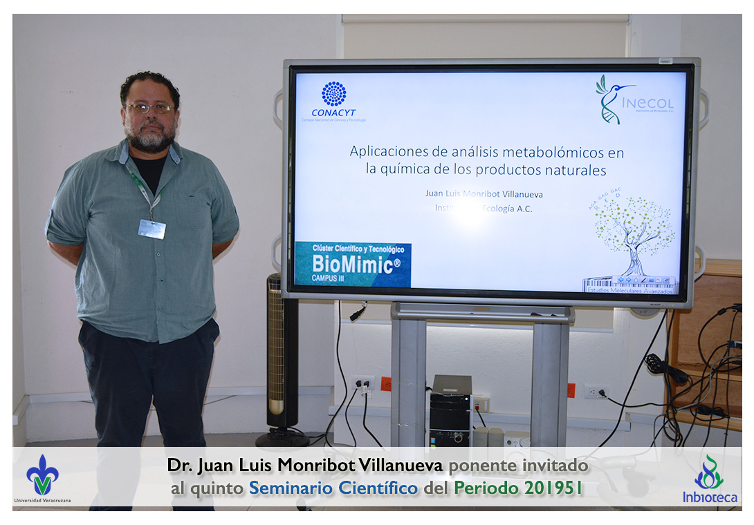 El ponente invitado fue el Dr. Juan Luis Monribot Villanueva Investigador de la Red de Estudios Moleculares Avanzados del Instituto de Ecología A. C. (INECOL). La conferencia impartida fue "plicaciones de análisis metabolómicos en la química de los productos naturales".