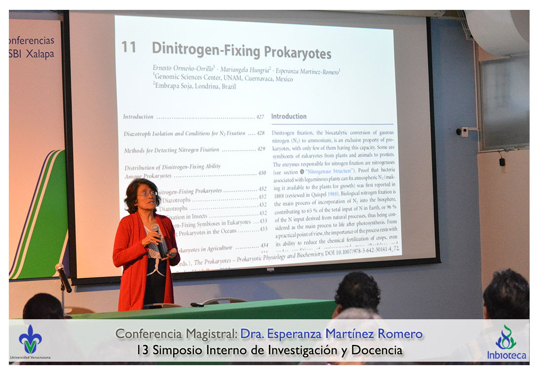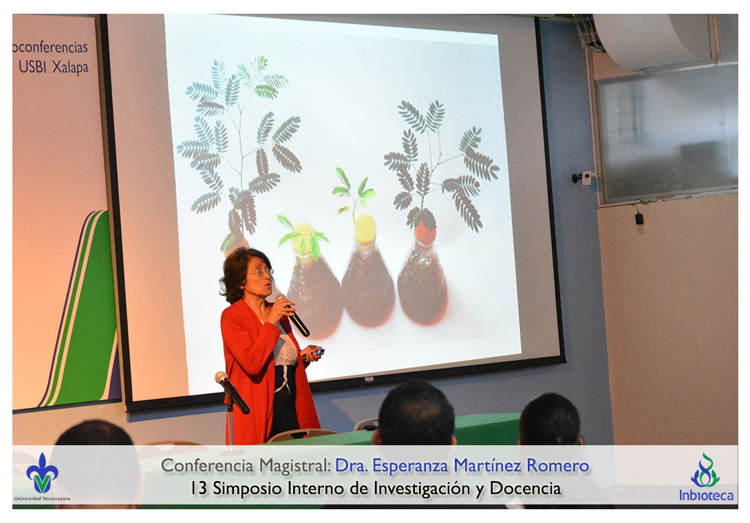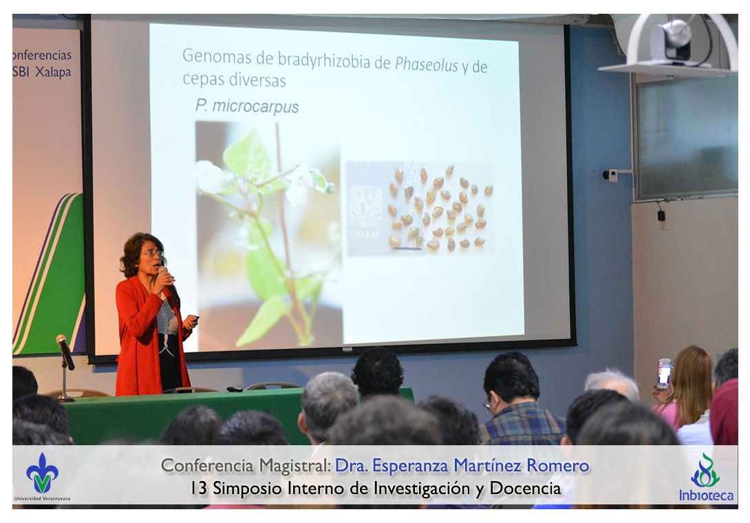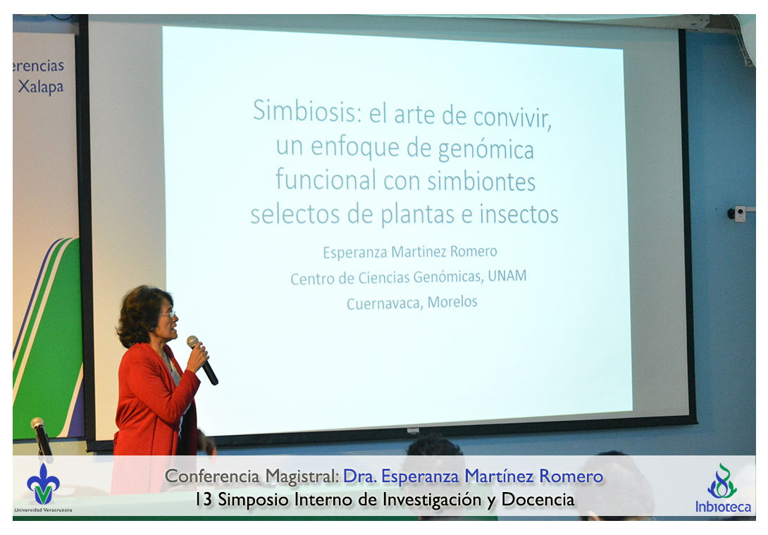 La ponente invitada fue la Dra. Esperanza Martínez Romero académico/investigador (SNI 3) del Centro de Ciencias Genómicas (CCG) de la Universidad Nacional Autónoma de México (UNAM). La conferencia magistral se tituló "Simbiosis, el arte de convivir: Un enfoque de genómica funcional con simbiontes selectos de plantas e insectos".
