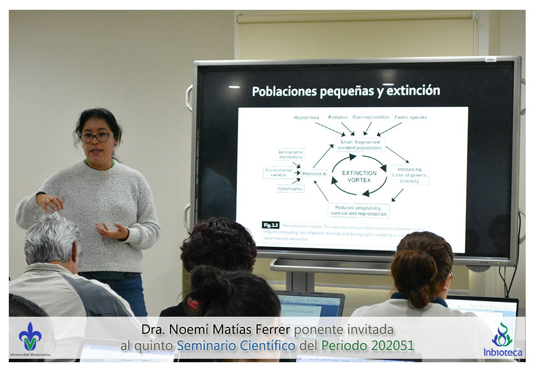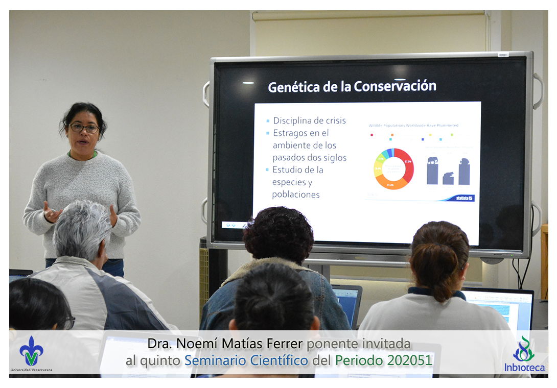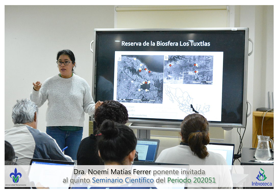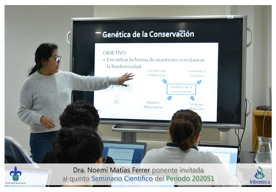 La ponente invitada fue la Dra. Noemí Matías Ferrer Técnico titular de la Red de Interacciones Multitróficas de la Instituto de Ecología, A. C. (INECOL). La conferencia impartida fue "Herramientas Moleculares en Genética de la Conservación. Ranas, aves y hongos como estudios de caso"