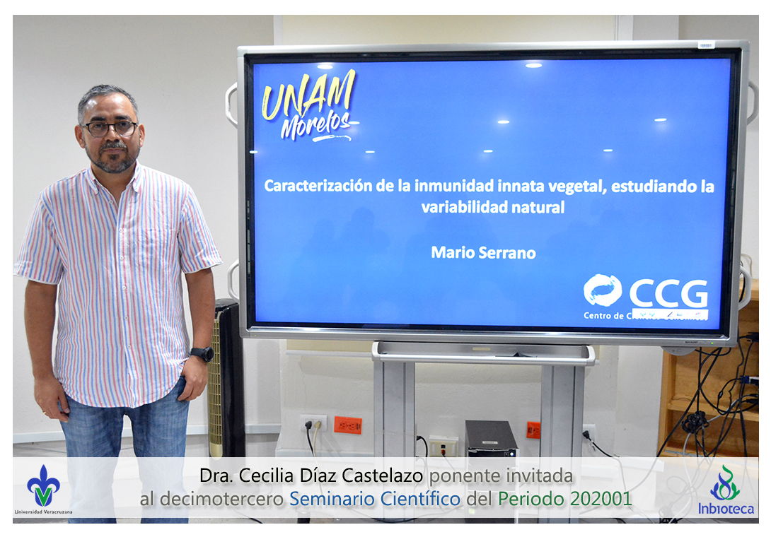 El ponente invitado fue el Dr. Mario Alberto Serrano Ortega investigador (SNI 2) del Centro de Ciencias Genómicas (CCG) Campus Morelos de la Universidad Nacional Autónoma de México. La conferencia impartida fue "Caracterización de la inmunidad innata vegetal, esstudiando la variabilidad natural".