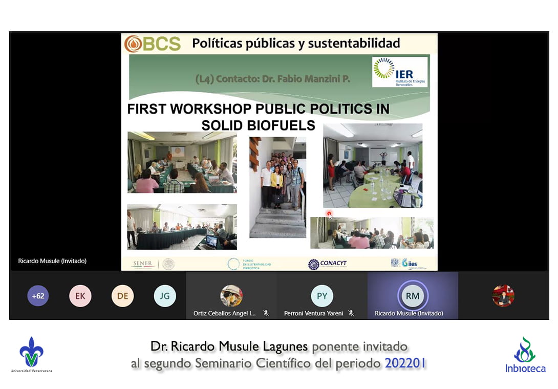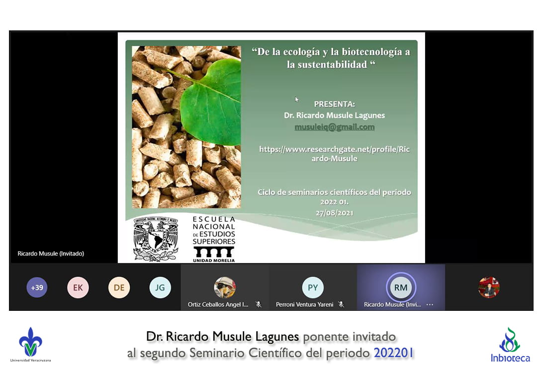 El seminario se desarrolló con la participación del Dr. Ricardo Musule Lagunes de la Escuela Nacional de Estudios Superiores (ENES) (Unidad Morelia), de la Universidad Nacional Autónoma de México. La conferencia se tituló: De la Ecología y la Biotecnología a la sustentabilidad.