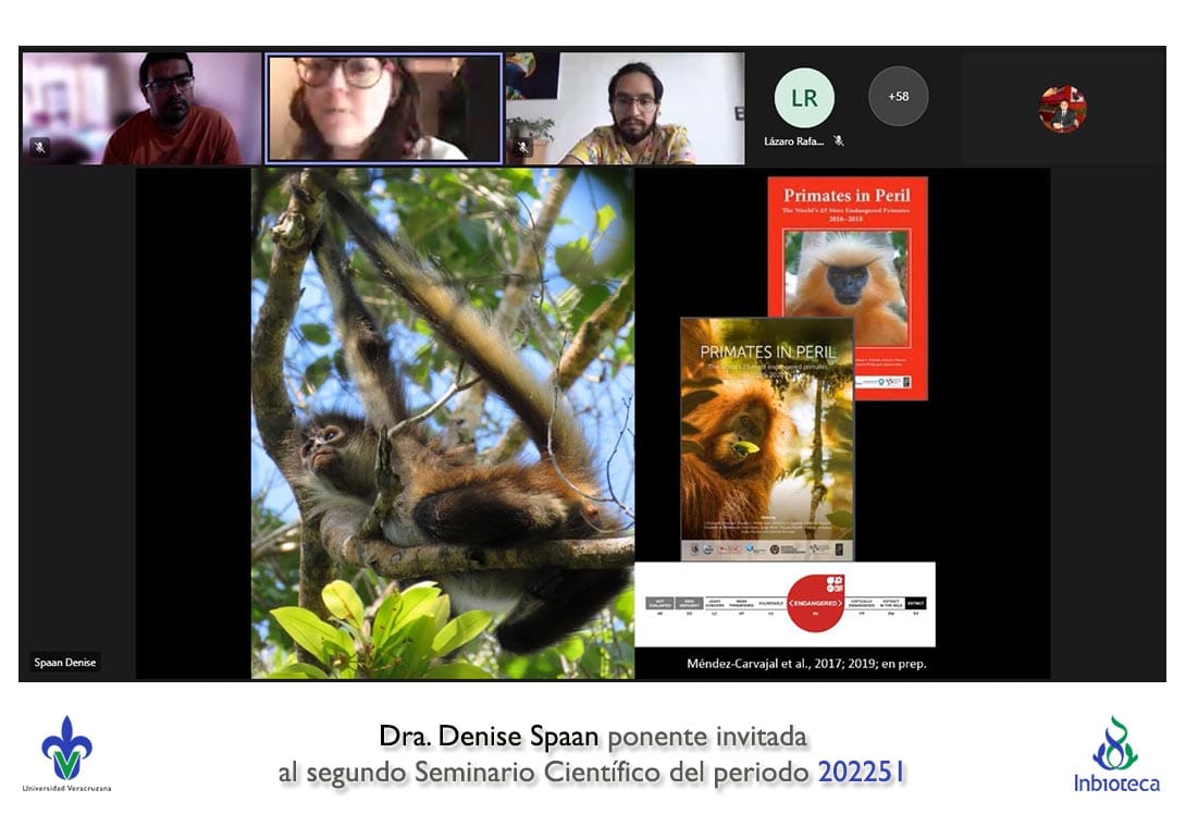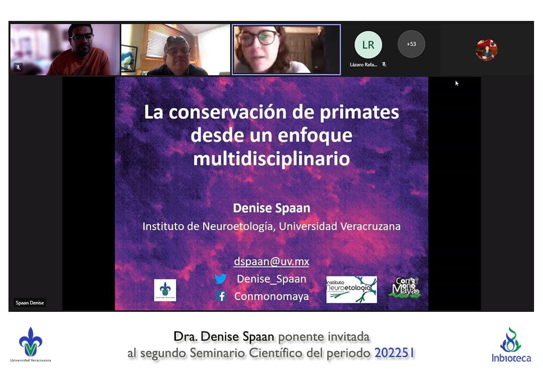 El seminario se desarrolló con la participación de la Dra. Denise Spaan investigadora del Instituto de Neuroetologia de la Universidad Veracruzana. La conferencia se tituló: La conservación de primates desde un enfoque multidisciplinario.