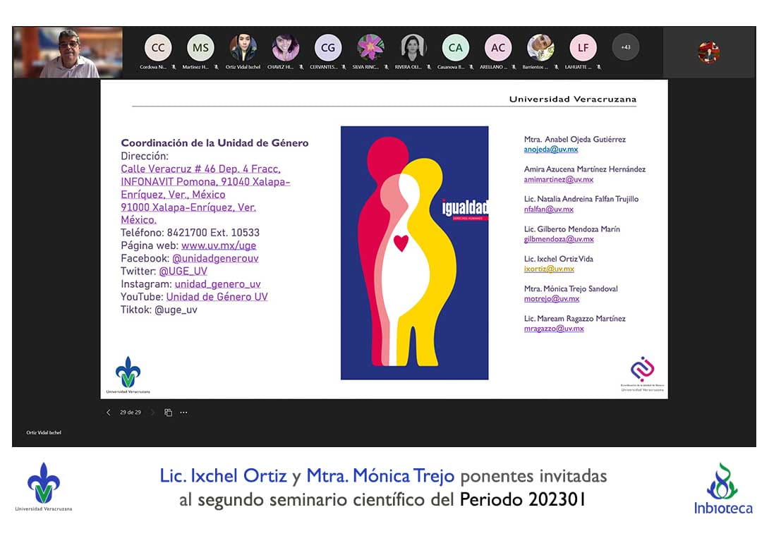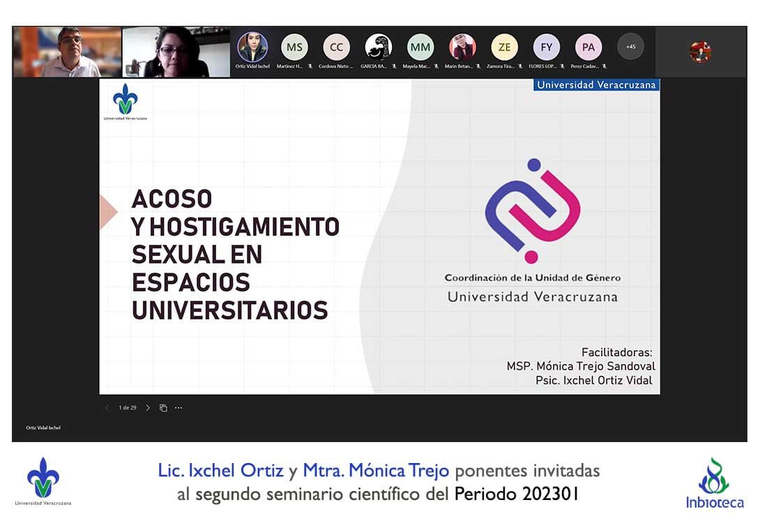 El seminario se desarrolló con la participación de la Lic. Ixchel Ortiz Vidal y la MSP. Mónica Trejo Sandoval facilitadoras de la Coordinación de la Unidad De Género de la Universidad Veracruzana. La conferencia se tituló: Acoso y hostigamiento sexual en espacios universitarios.
