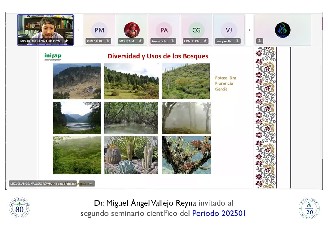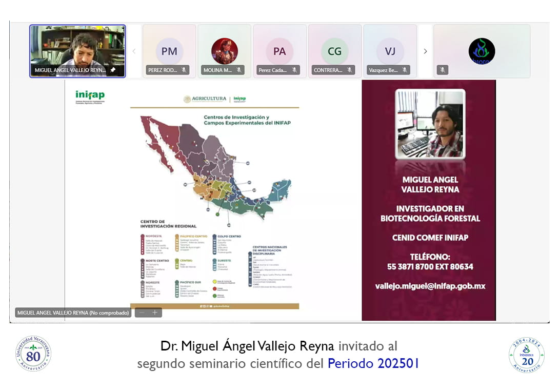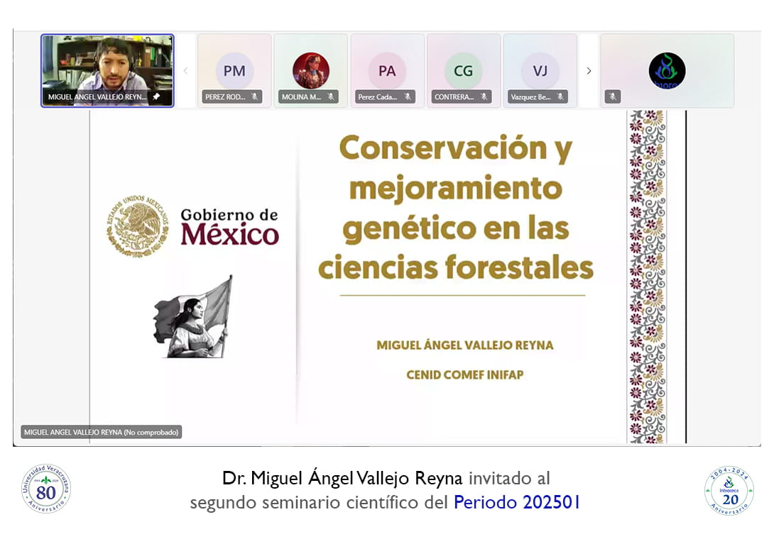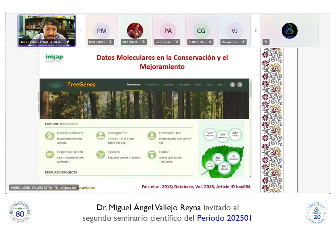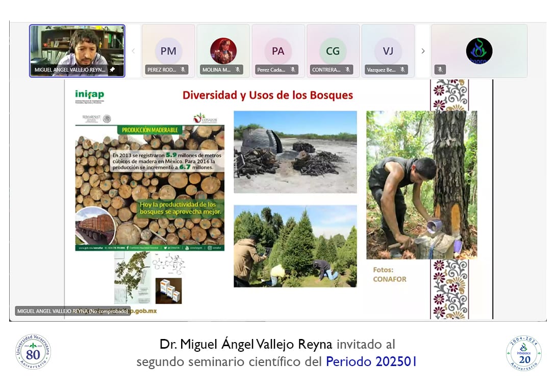 El seminario se desarrolló con la participación del Dr. Miguel Ángel Vallejo Reyna Investigador del Laboratorio de Biotecnología Forestal del CENID Conservación y Mejoramiento de Ecosistemas Forestales (COMEF) del Instituto Nacional de Investigaciones Forestales, Agrícolas y Pecuarias (INIFAP). La conferencia se tituló: Conservación y mejoramiento genético en las ciencias forestales.