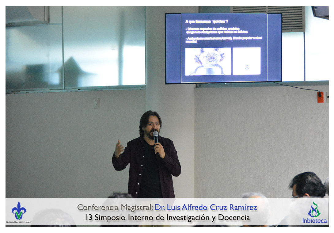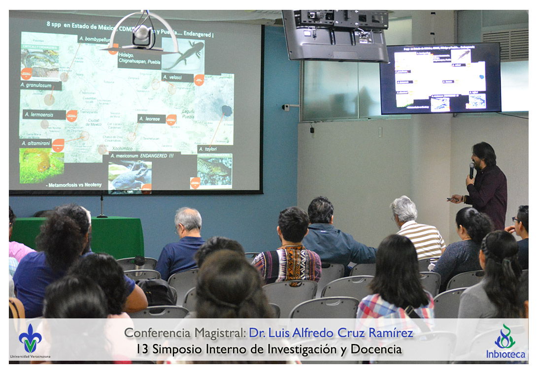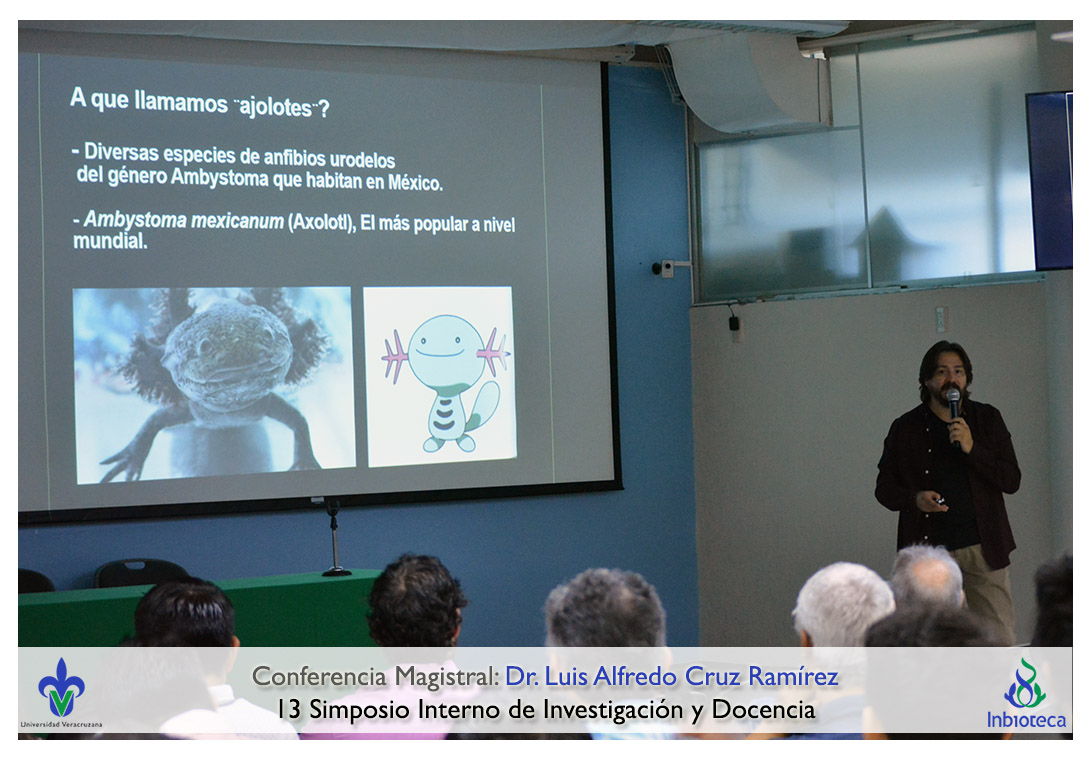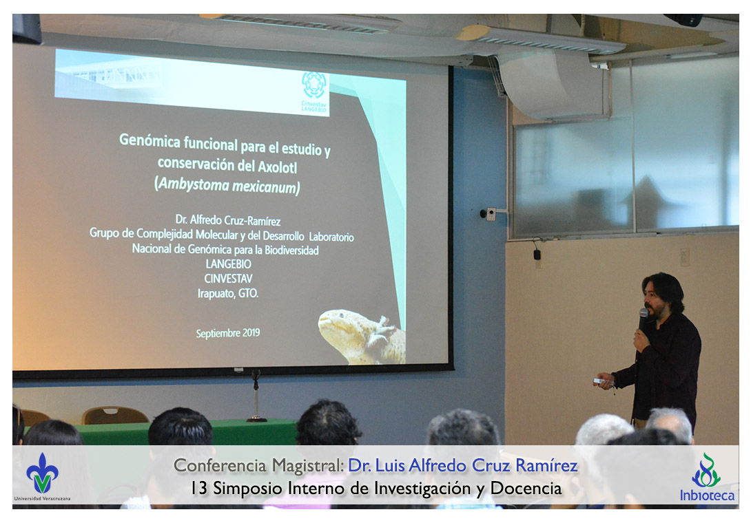 El ponente invitado fue el Dr. Luis Alfredo Cruz Ramírez académico/investigador (SNI 2) del Laboratorio Nacional de Genómica para la Biodiversidad (LANGEBIO) del Centro de Investigación y de Estudios Avanzados (CINVESTAV) del Instituto Politécnico Nacional (IPN). La conferencia magistral se tituló "Genómica funcional para el estudio y conservación del Axolotl (Ambystoma mexicanum)".