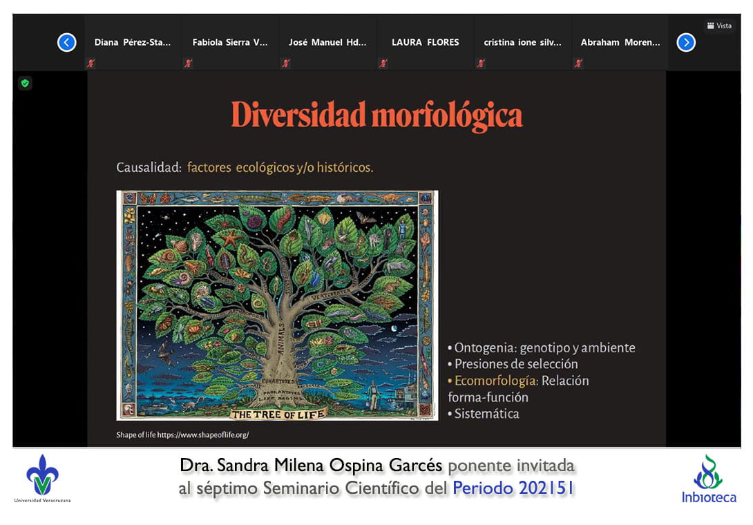 El seminario se realizó con la participación de la Dra. Sandra Milena Ospina Garcés Posdoctorante de la Facultad de Ciencias de la Universidad Nacional Autónoma de México. La conferencia se tituló Entendiendo las formas animales: la morfometría geométrica aplicada a la ecomorfología.