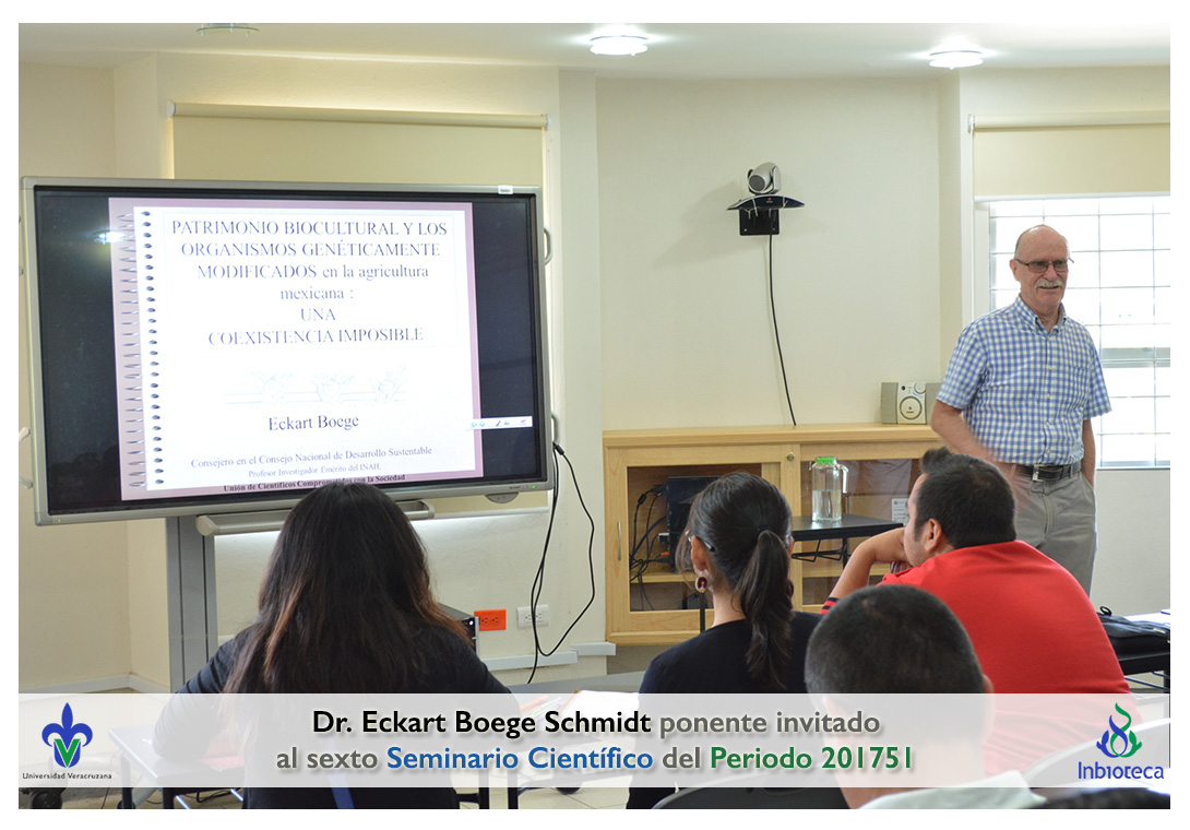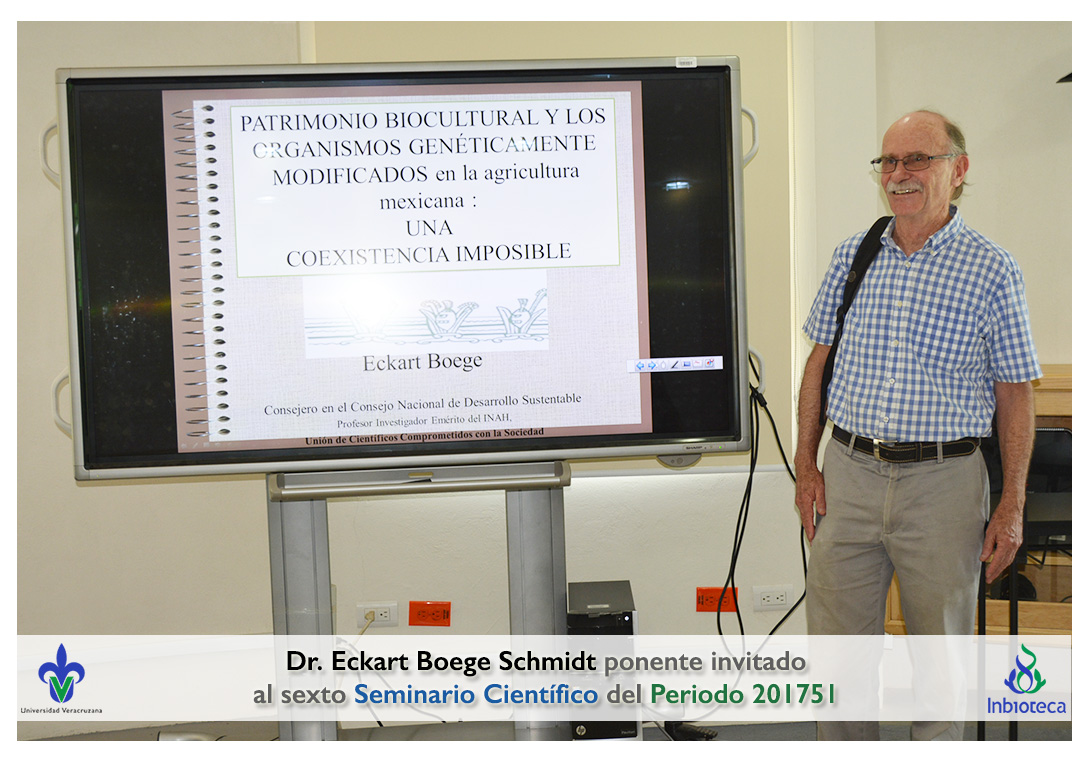 El ponente invitado fue el Eckart Boege Schmidt investigador emérito del Instituto de Antropología e Historia (INAH). La conferencia impartida fue "Importancia del patrimonio biocultural y los recursos genéticos".