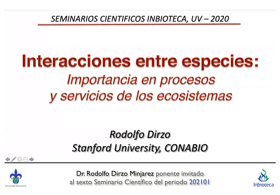 El ponente invitado fue el Dr. Rodolfo Dirzo Minjarez Principal Investigator en el Department of Biology de la Stanford University en Stanford, California, EU. La conferencia impartida fue "Interacciones entre especies: importancia en procesos y servicios de los ecosistemas".