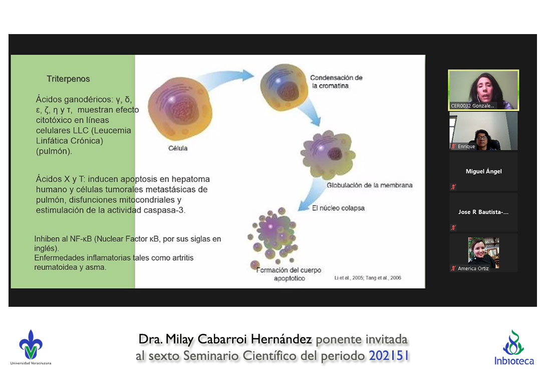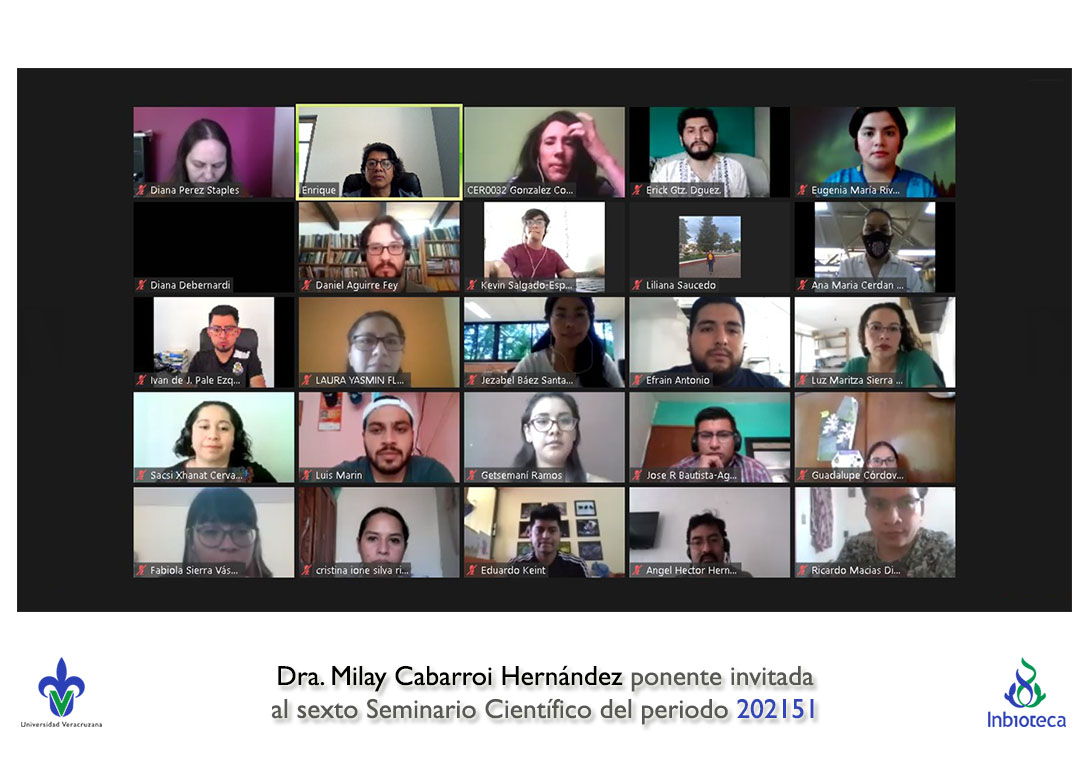 23 de abril de 2021.- En el "Aula Virtual" del INBIOTECA se realizó el sexto Seminario Científico para los estudiantes del programa de Doctorado en Ciencias en Ecología y Biotecnología (PNPC: Competencia Internacional) del ciclo Seminarios Científicos y Docencia 2021 del Periodo 202151 (febrero – julio 2021).