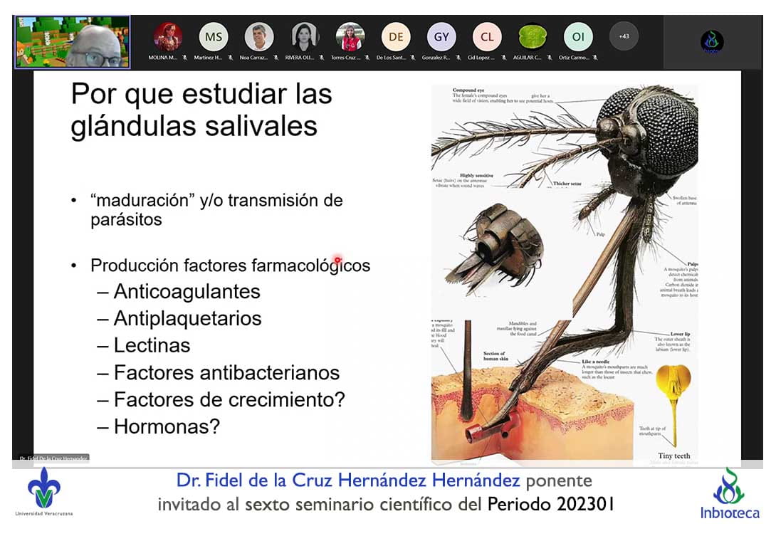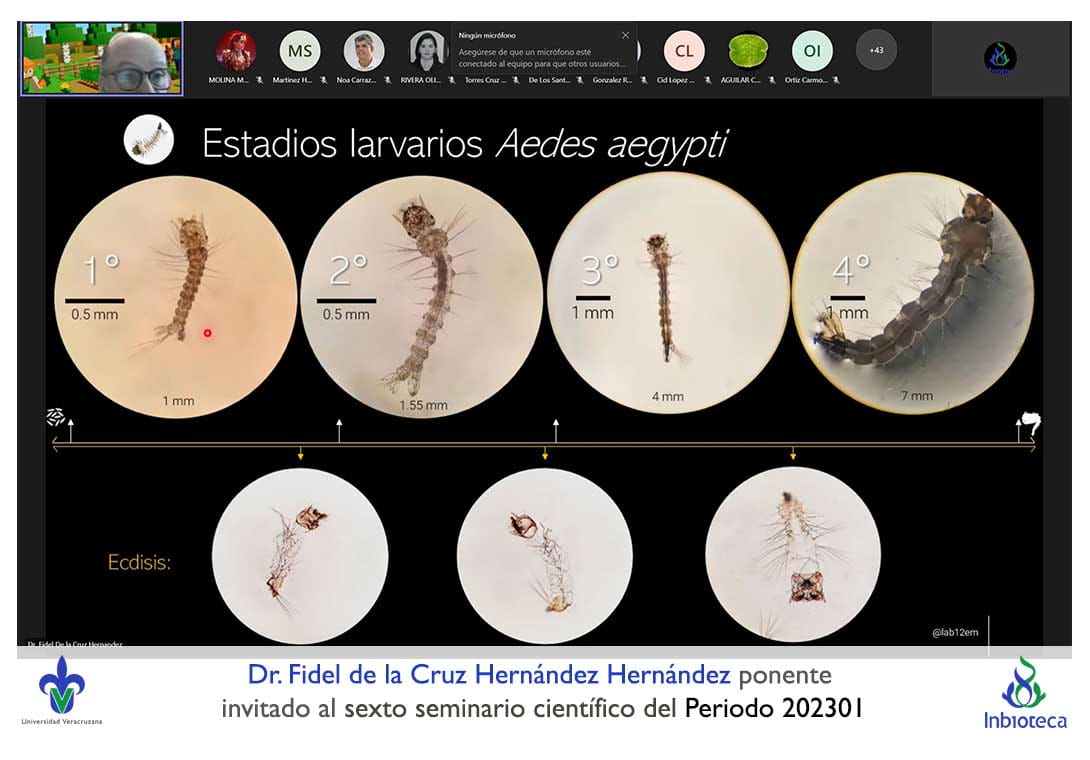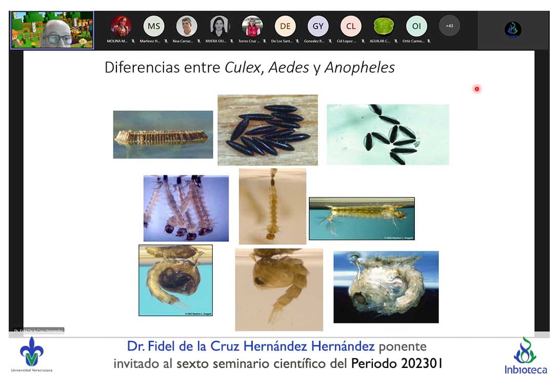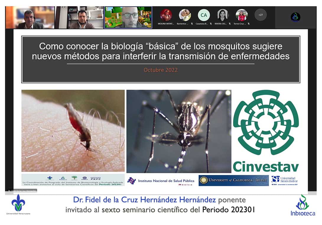 El seminario se desarrolló con la participación del Dr. Fidel de la Cruz Hernández Hernández Investigador del Departmento de Genetica y Biología Molecular del Centro de Investigación y Estudios Avanzados (CINVESTAV) del Instituto Politécnico Nacional (IPN). La conferencia se tituló: Como conocer la Biología "Básica" de los mosquitos sugiere nuevos métodos para interferir la transmisión de enfermedades.