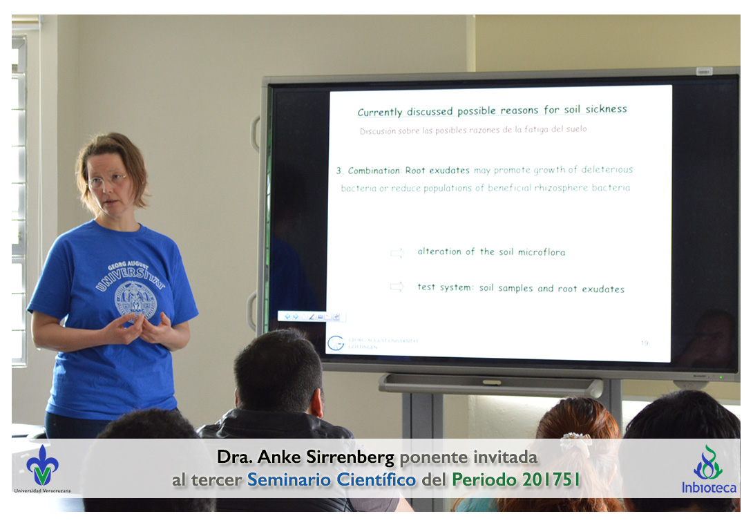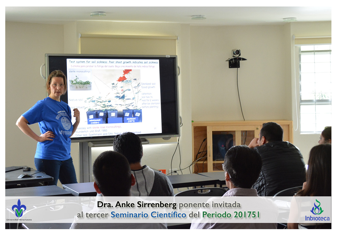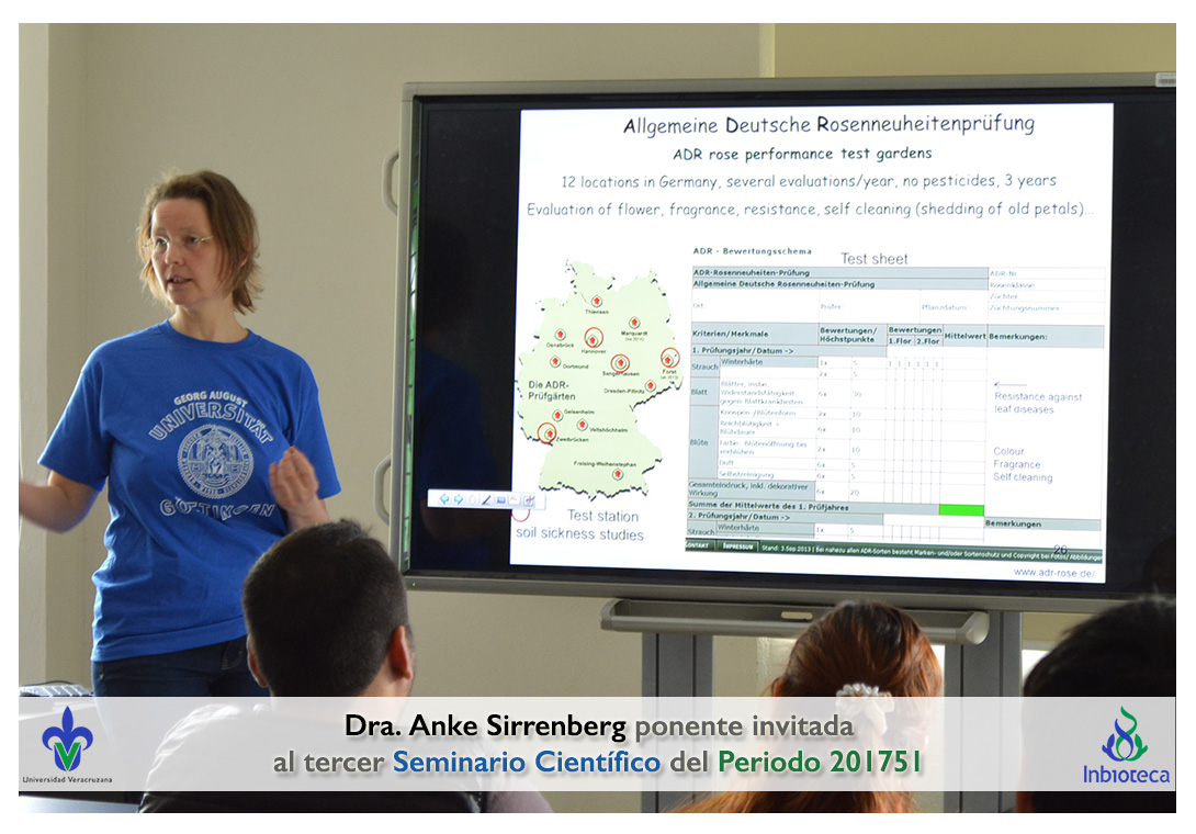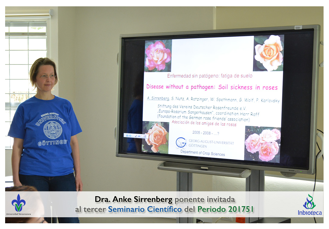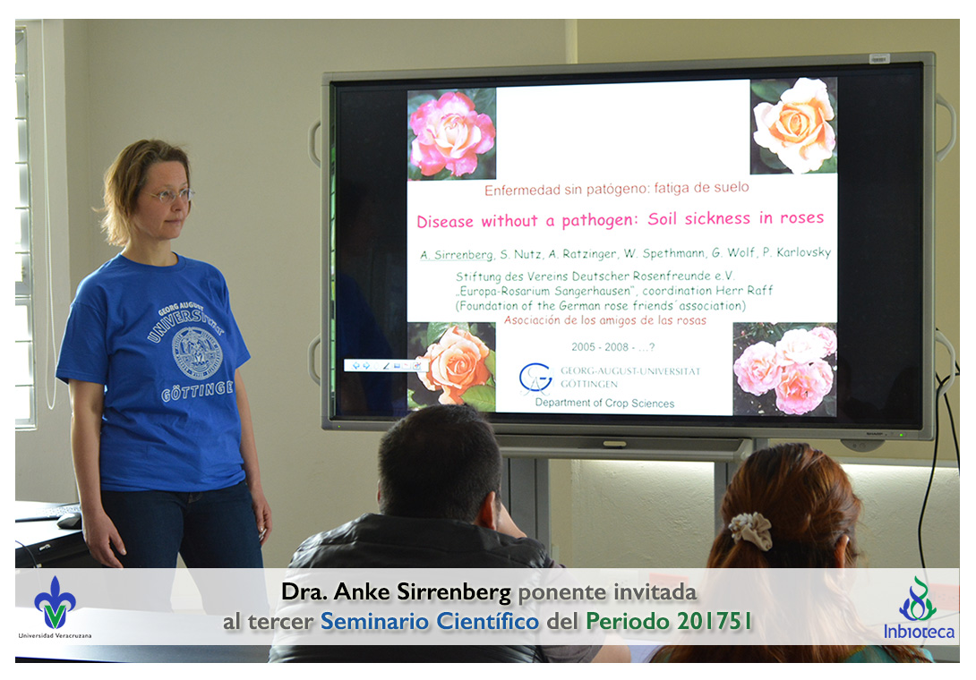 La ponente invitada fue la Dra. Anke Sirrenberg Académico/Investigador de la Universidad de Göttingen, Alemania. La conferencia impartida fue "Disease without a pathogen: Soil sickness in roses".