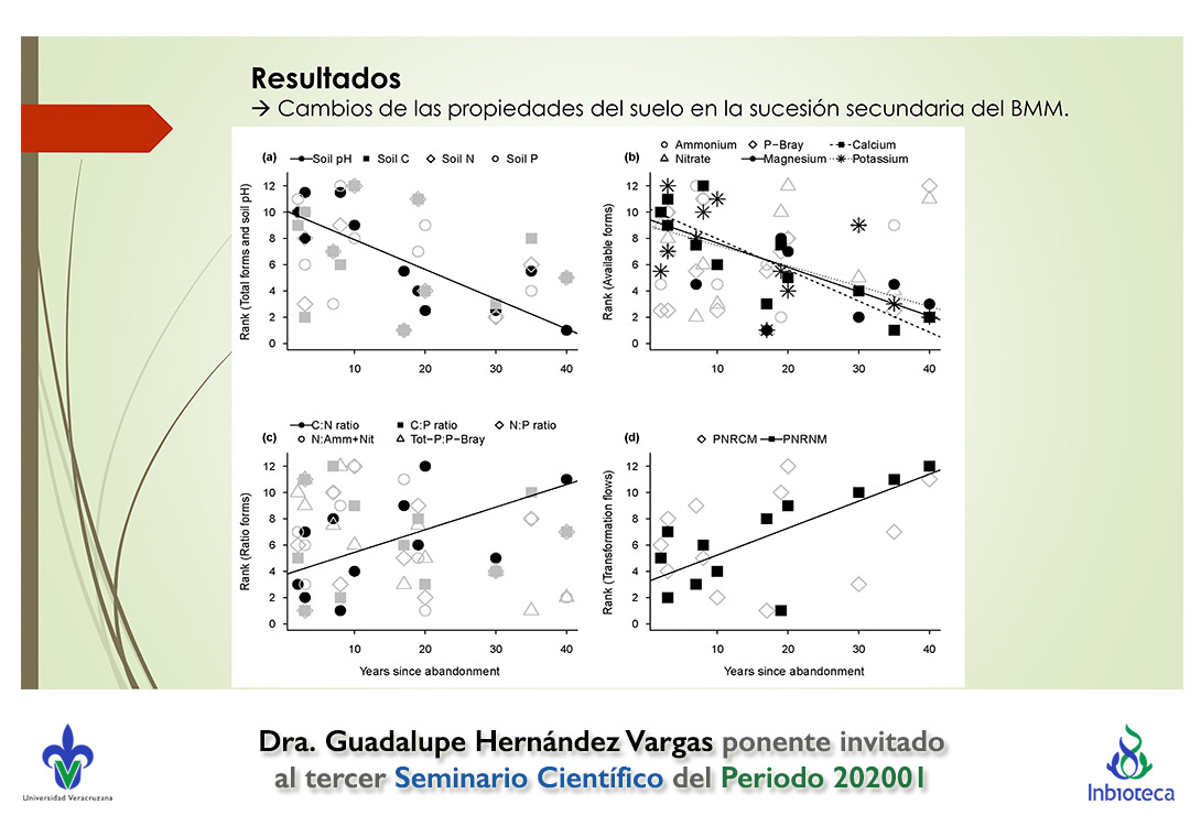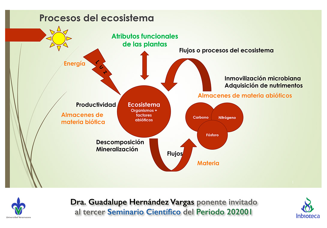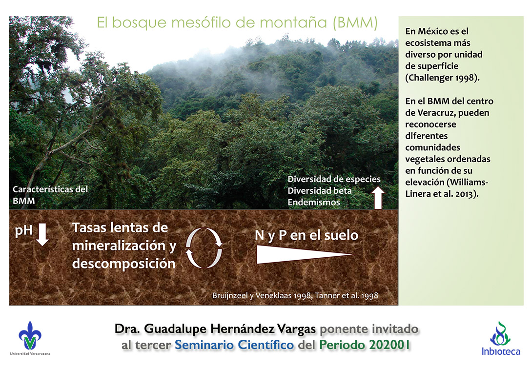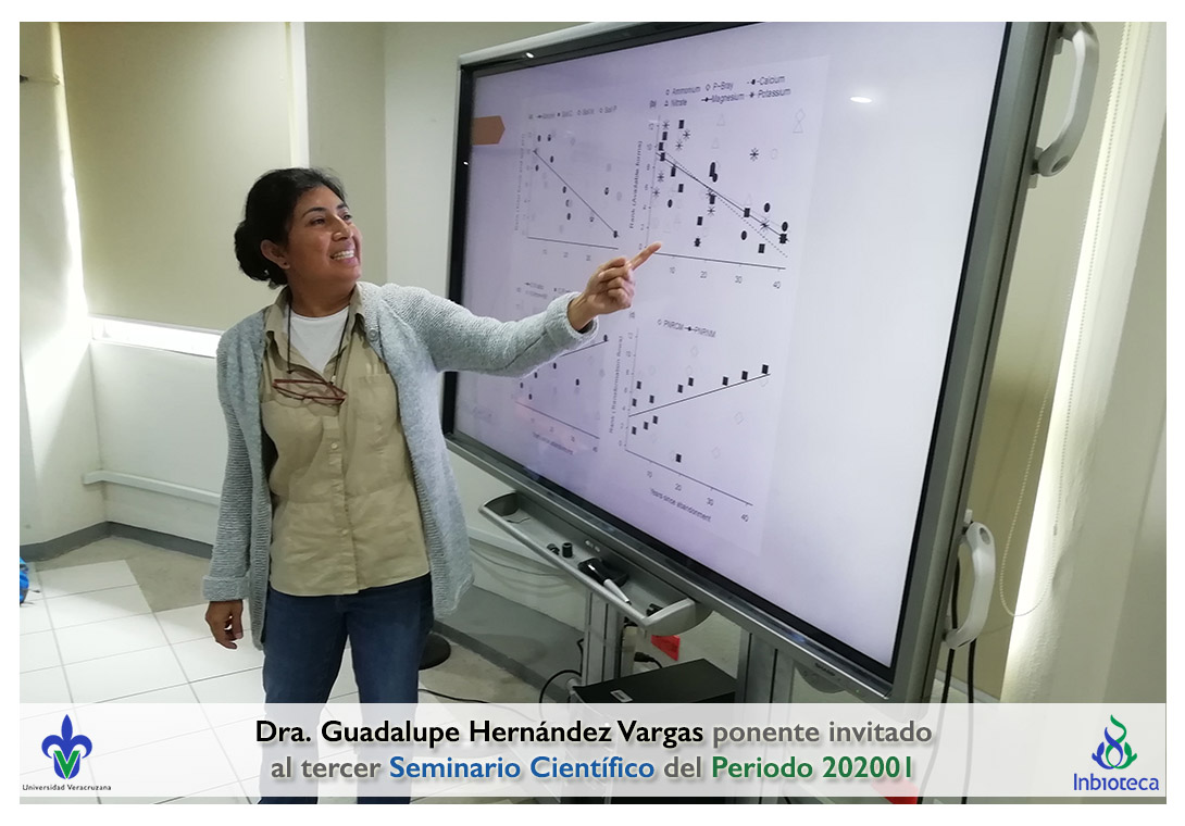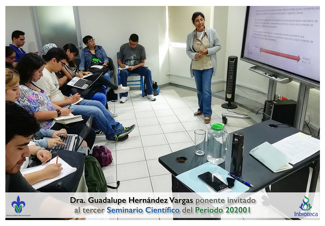 La ponente invitado fue la Dra. Guadalupe Hernández Vargas Becaria SNI del Instituto de Biotecnología y Ecología Aplicada de la Universidad Veracruzana. La conferencia impartida fue "Conservar los recursos es la estrategia ecológica dominante de las plantas en el bosque mesófilo de montaña".