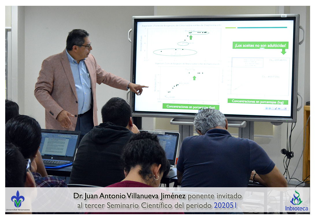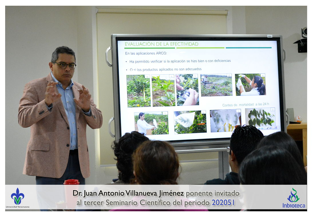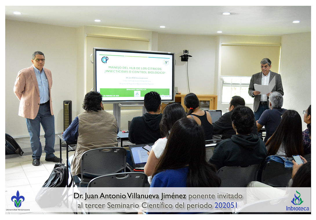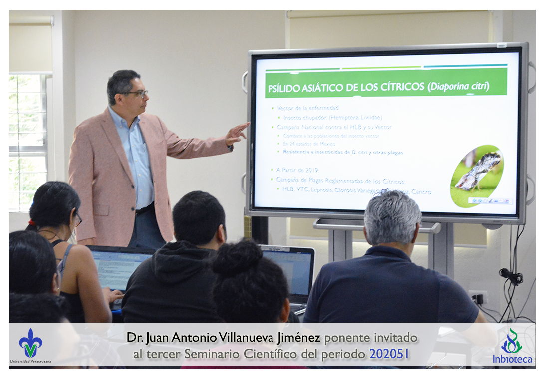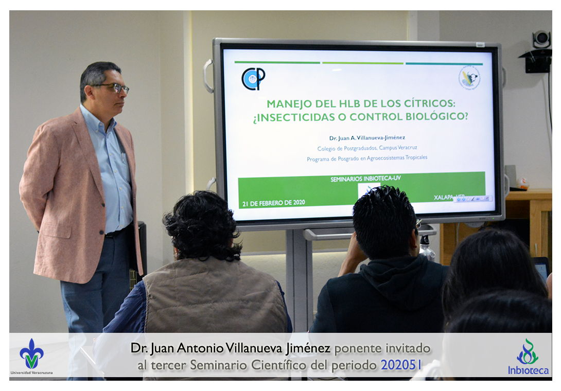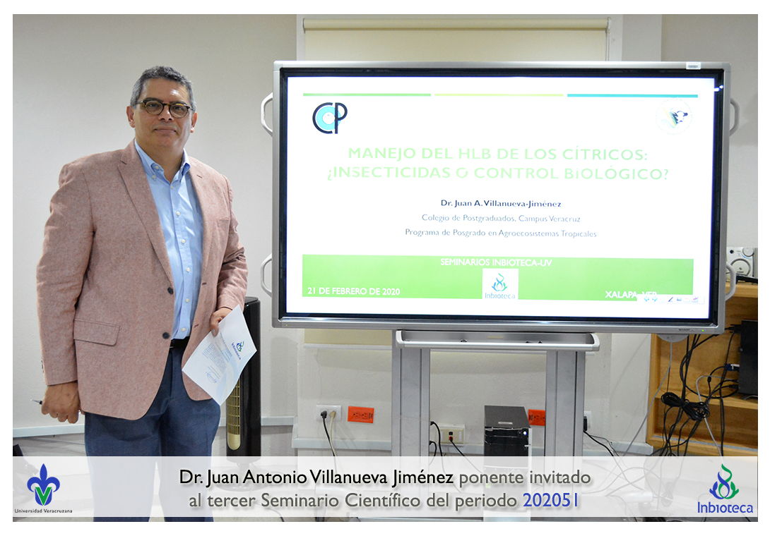 El ponente invitado fue el Dr. Juan Antonio Villanueva Jiménez investigador del Colegio de Postgraduados (COLPOS) Campus Veracruz. La conferencia impartida fue "Manejo del HLB en los Cítricos, ¿Insecticidas o Control Biológico?".