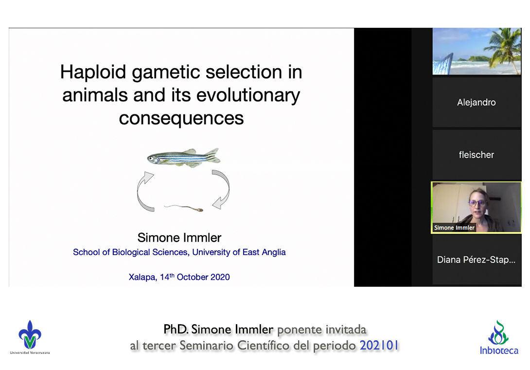 La ponente invitada fue la Dra. Simone Immler investigadora de la School of Biological Sciences de la University of East Anglia. La conferencia impartida fue "Haploid gametic selection in animals and its evolutionaryconsequences".
