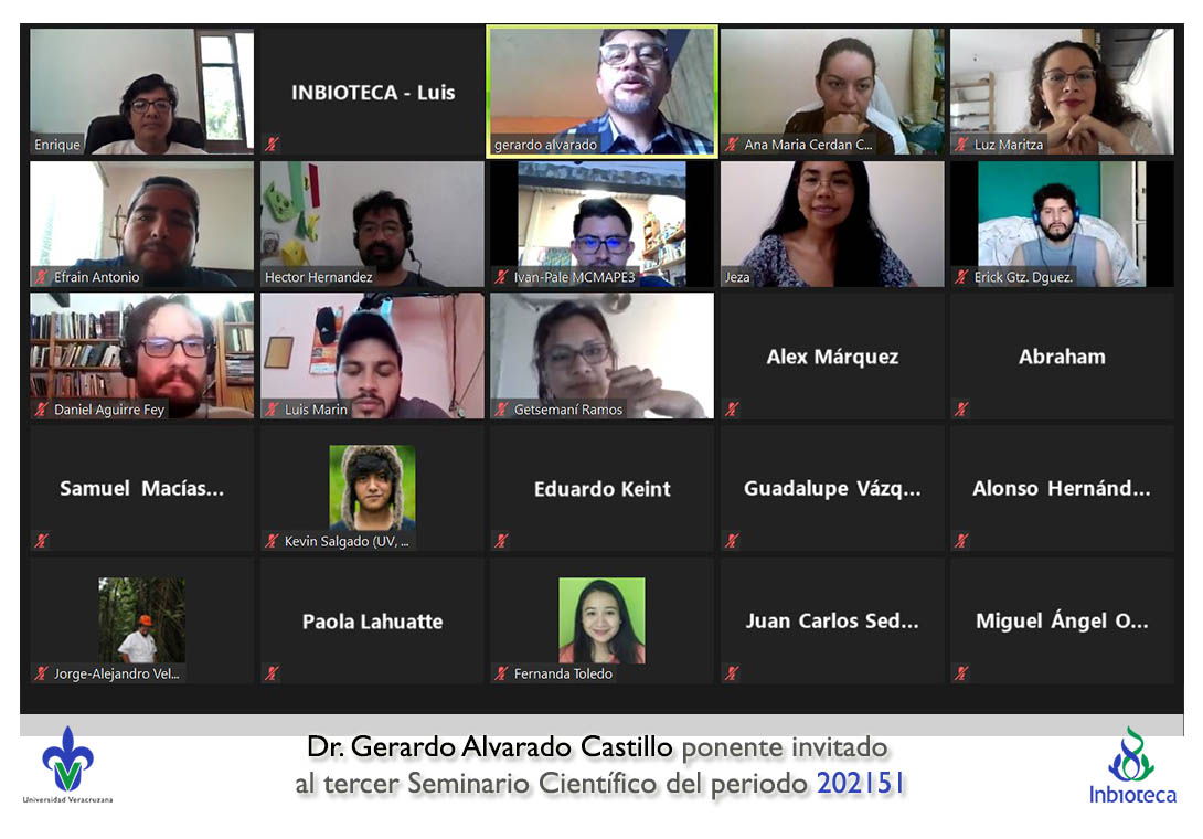 26 de marzo de 2021.- En el "Aula Virtual" del INBIOTECA se realizó el tercer Seminario Científico para los estudiantes del programa de Doctorado en Ciencias en Ecología y Biotecnología (PNPC: Competencia Internacional) del ciclo Seminarios Científicos y Docencia 2021 del Periodo 202151 (febrero – julio 2021).
