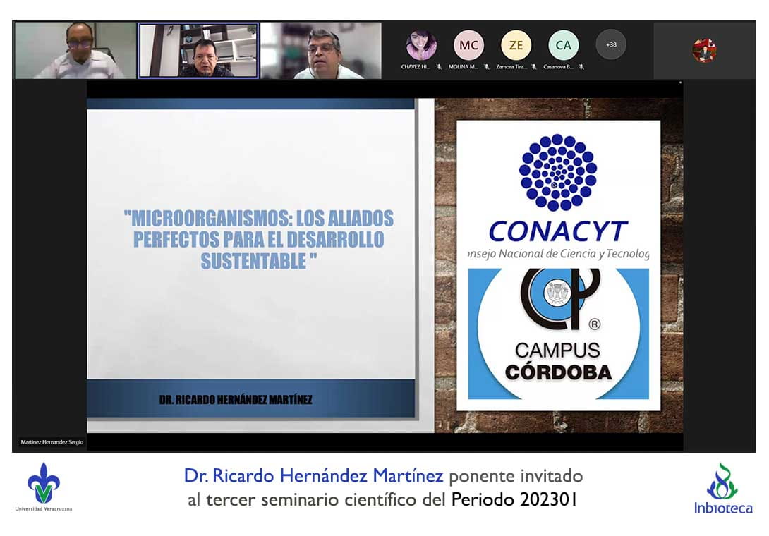 El seminario se desarrolló con la participación del Dr. Ricardo Hernández Martínez Profesor Investigador Cátedra CONACyT del Colegio de Postgraduados (COLPOS) Campus Córdoba. La conferencia se tituló: Microorganismos: los aliados perfectos para el desarrollo sustentable.