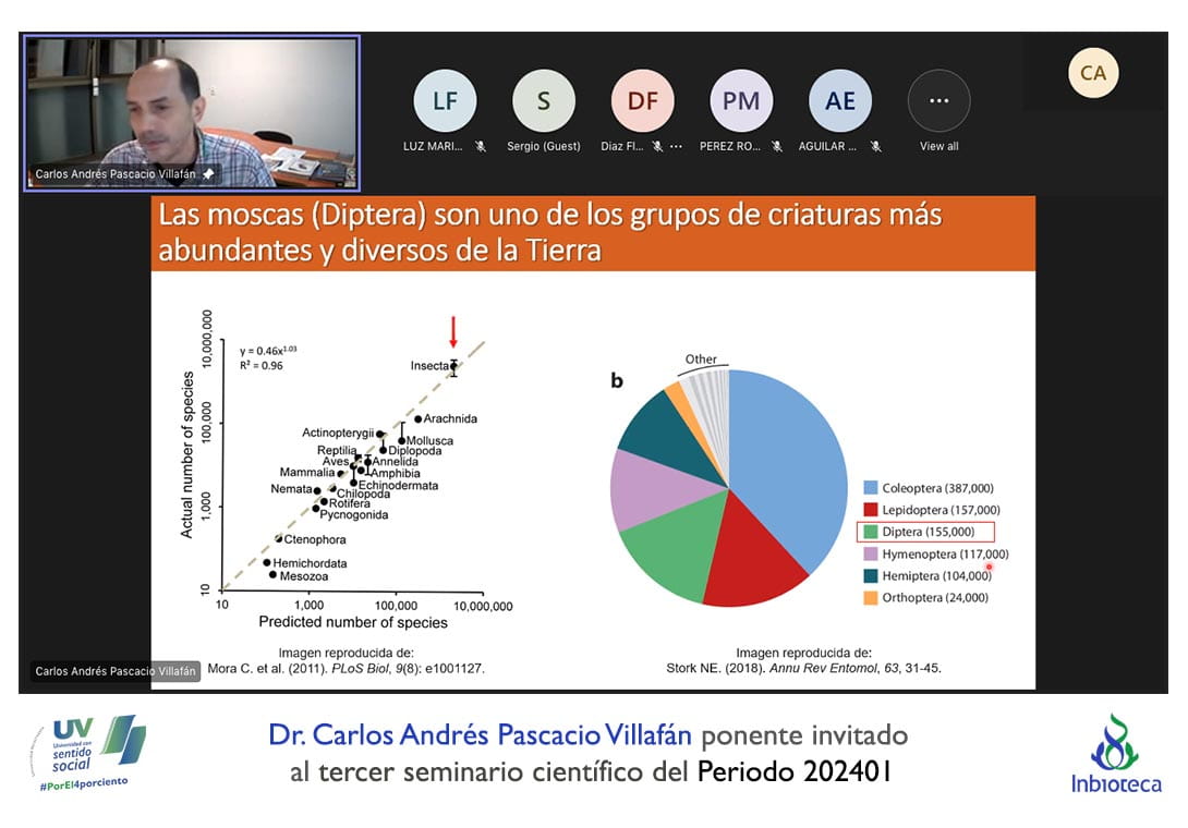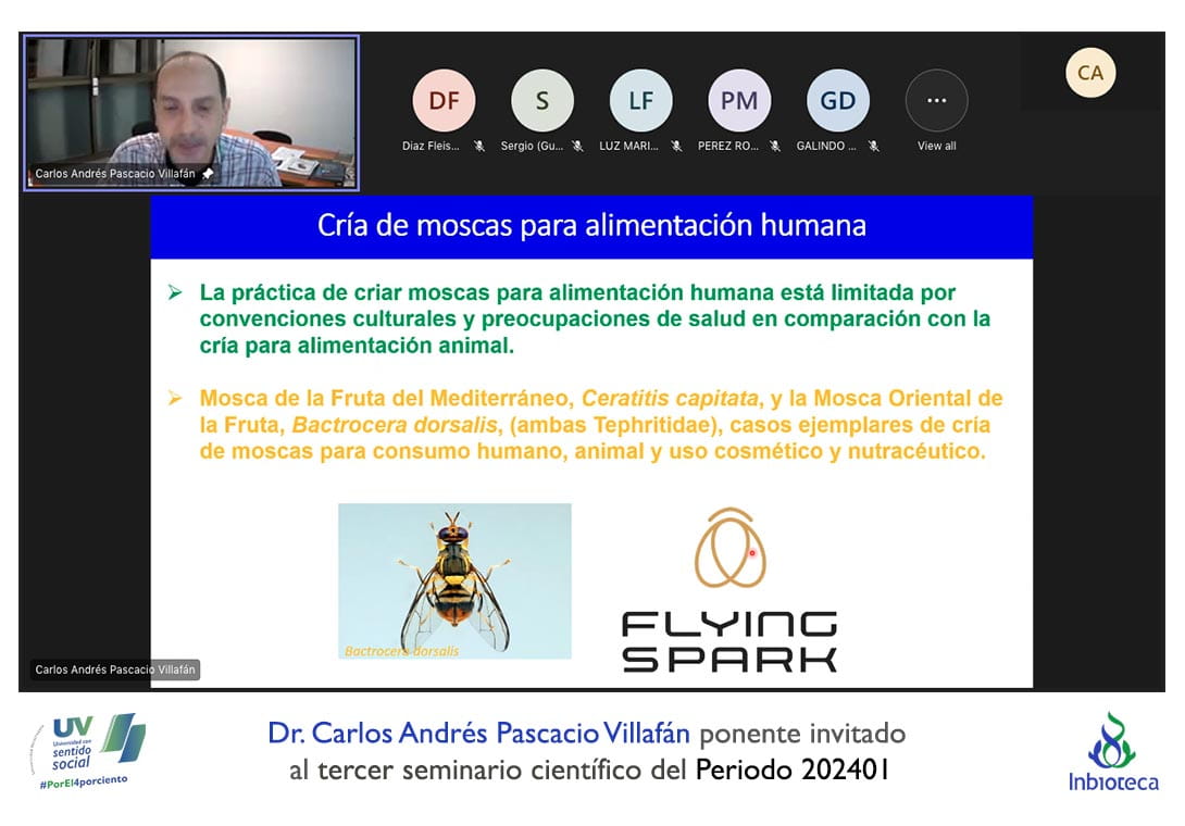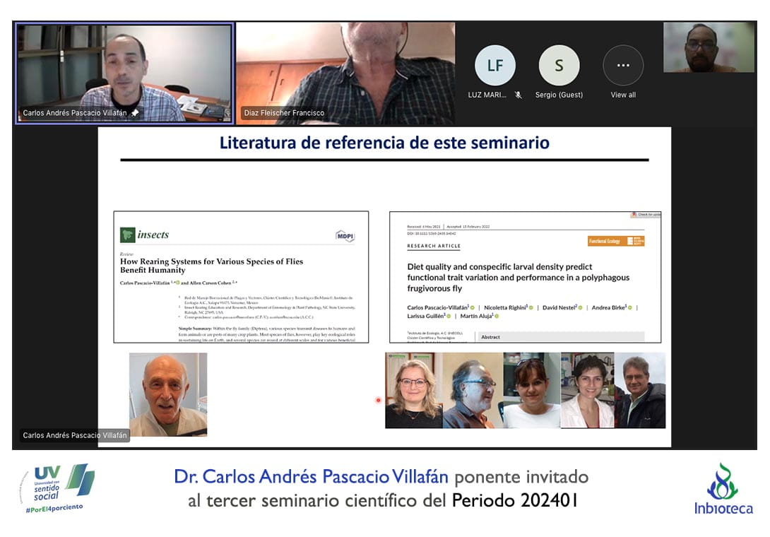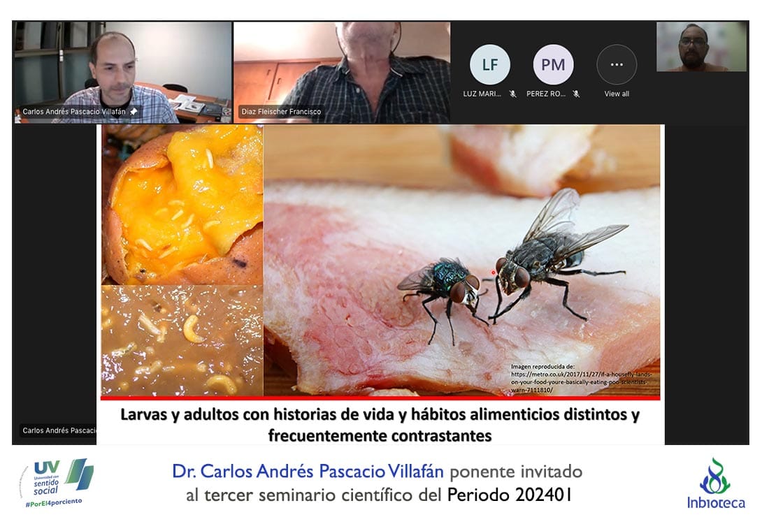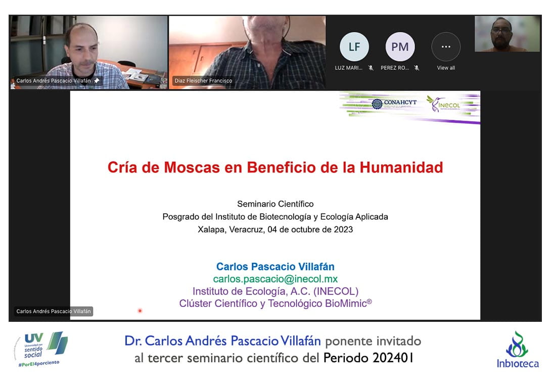 El seminario se desarrolló con la participación del Dr. Carlos Andrés Pascacio Villafán investigador de la Red de Manejo Biorracional de Plagas y Vectores del Instituto de Ecología A. C. (INECOL). La conferencia se tituló: Cría de moscas en beneficio de la Humanidad.