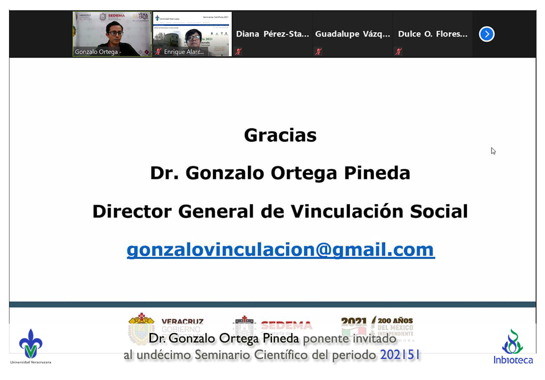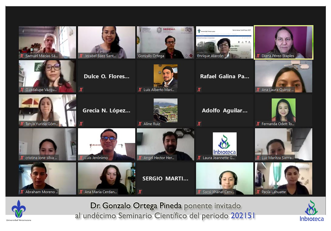 11 de junio de 2021.- En el "Aula Virtual" del INBIOTECA se realizó el undécimo Seminario Científico para los estudiantes del programa de Doctorado en Ciencias en Ecología y Biotecnología (PNPC: Competencia Internacional) del ciclo Seminarios Científicos y Docencia 2021 del Periodo 202151 (febrero – julio 2021).