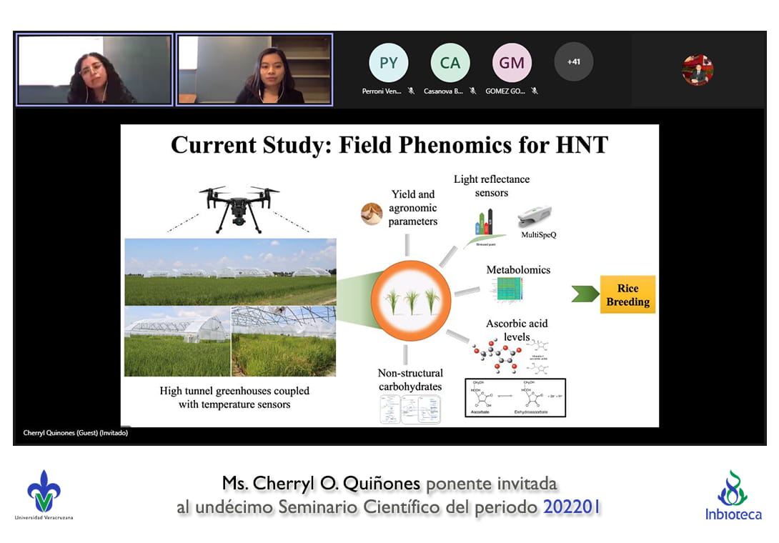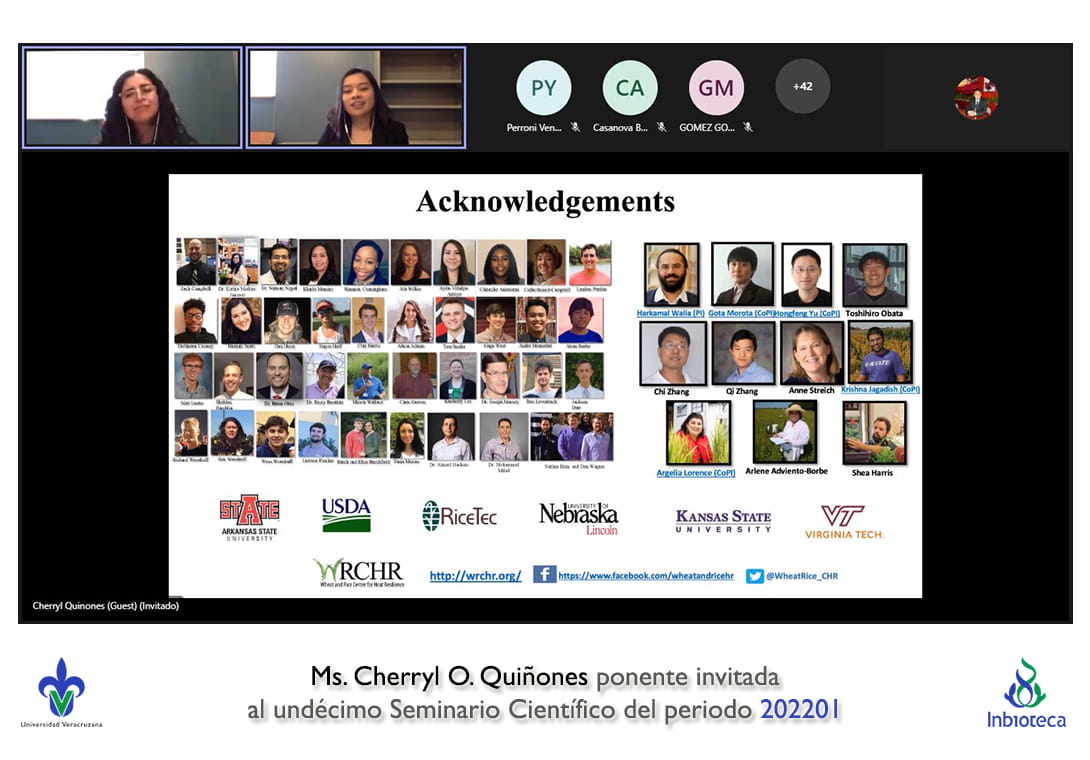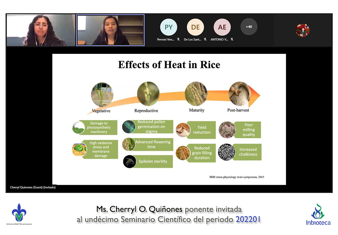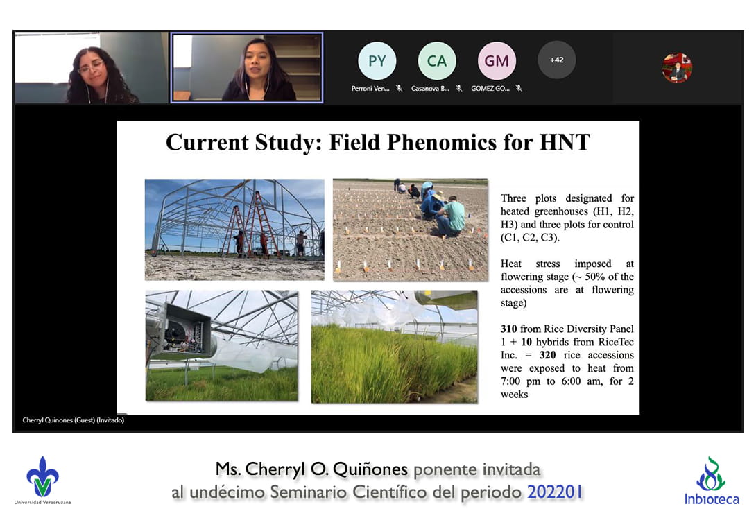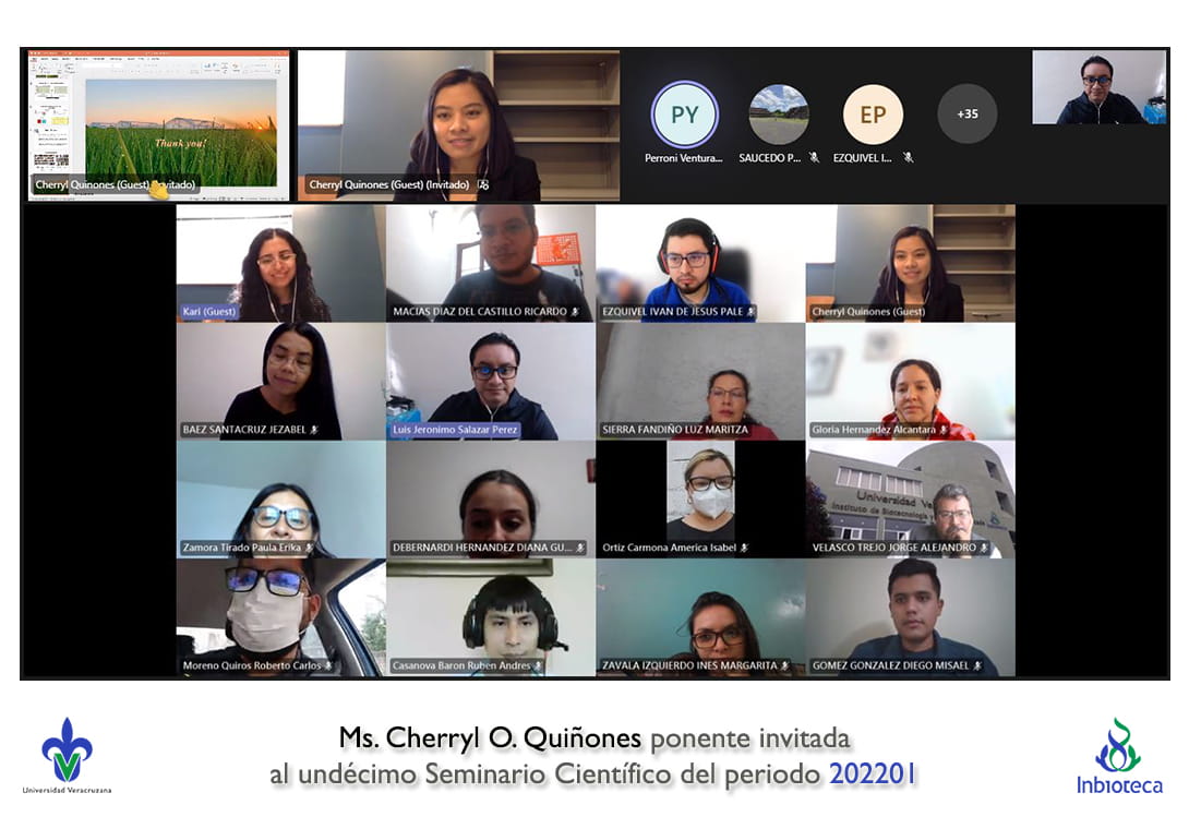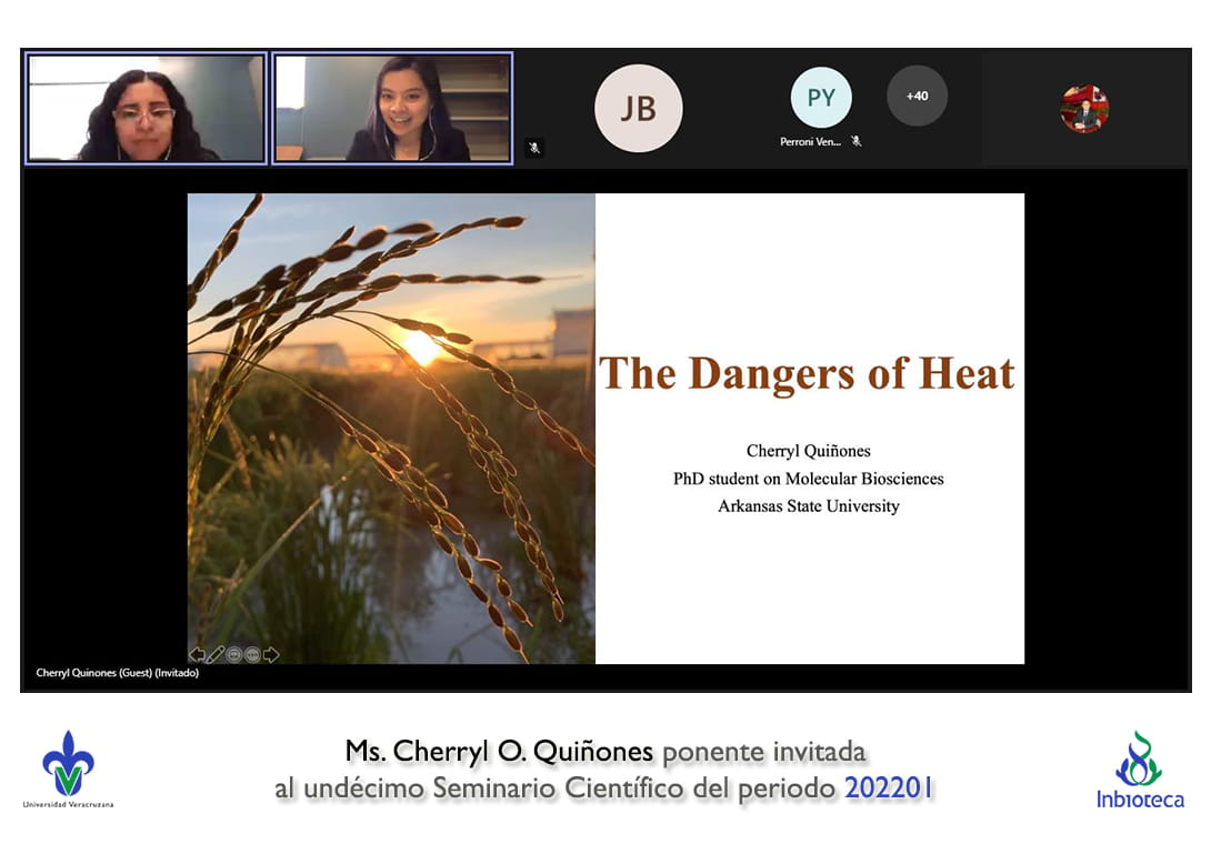 El seminario se desarrolló con la participación de la Ms. Cherryl O. Quiñones PhD student on Molecular Biosciences del Arkansas Biosciences Institute de la Arkansas State University de Arkansas, Estados Unidos. La conferencia se tituló: The Dangers of Heat.