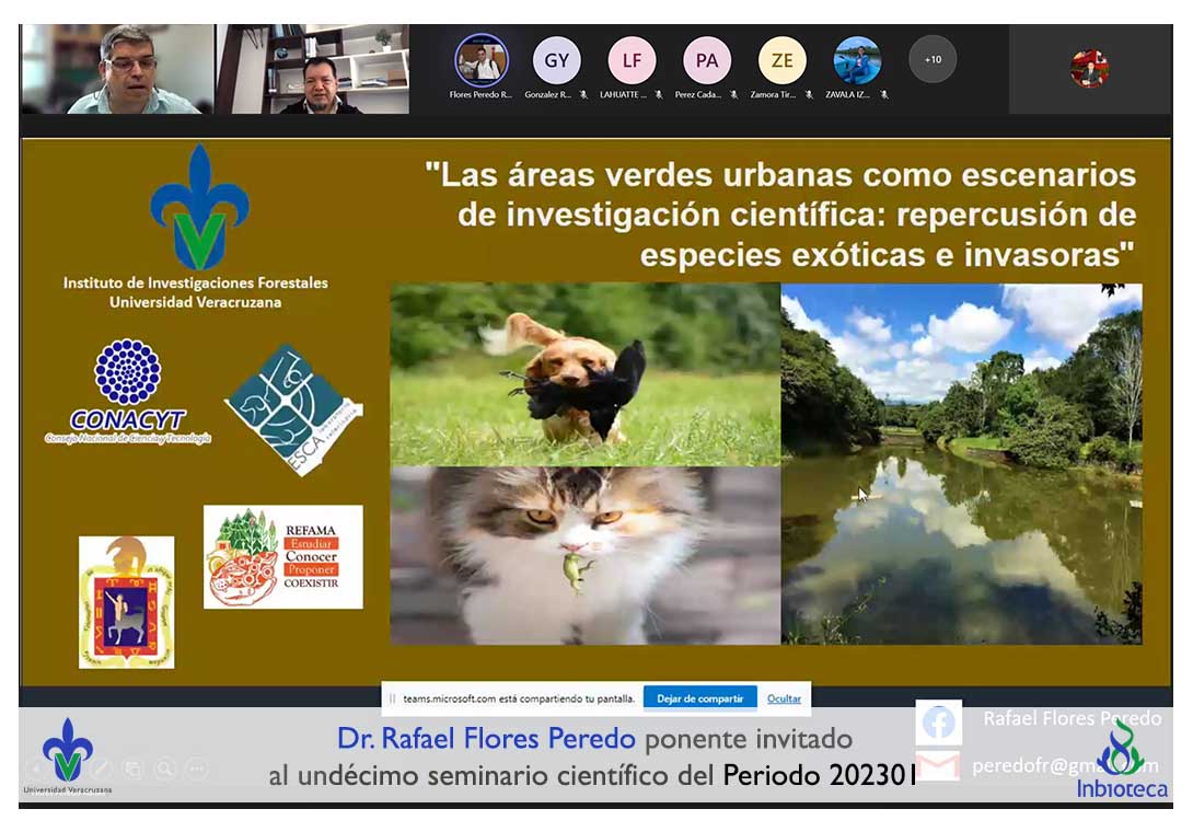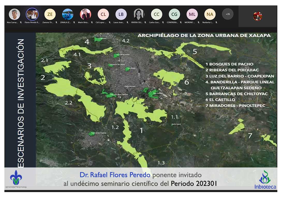 El seminario se desarrolló con la participación del Dr. Rafael Flores Peredo Académico/Investigador titular del Instituto de Investigaciones Forestales en la Universidad Vercruzana. La conferencia se tituló: Las áreas verdes urbanas como escenarios de investigación científica: repercusión de especies exóticas e invasoras.