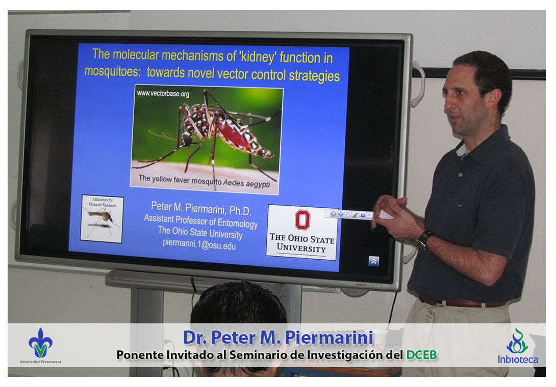 El profesor invitado fué el Dr. Peter M. Piermarini del Departamento de Entomología en The Ohaio State University, Estados Unidos de Norte américa, con la conferencia "The molecular mechanism od ‘kidney’ function in mosquitoes: towards novel vector control strategies".