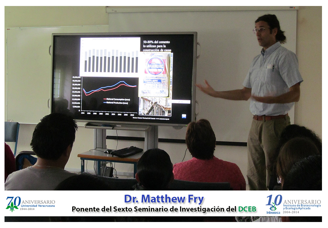 El investigador invitado fué el Dr. Matthew Fry, investigador del Department of Geography, de la University of North Texas, Estados Unidos, con la conferencia "Cemento, dióxido de carbono, y la narrativa de necesidad".