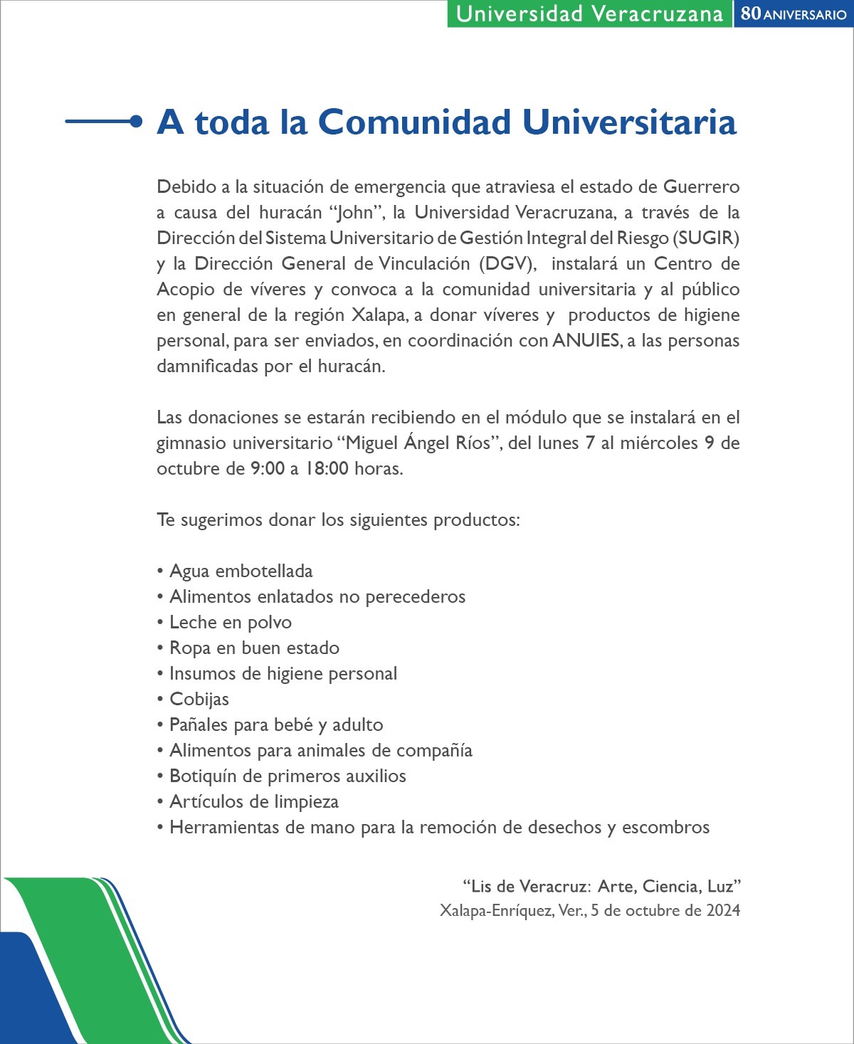 CENTRO DE ACOPIO UV HURACAN JOHN