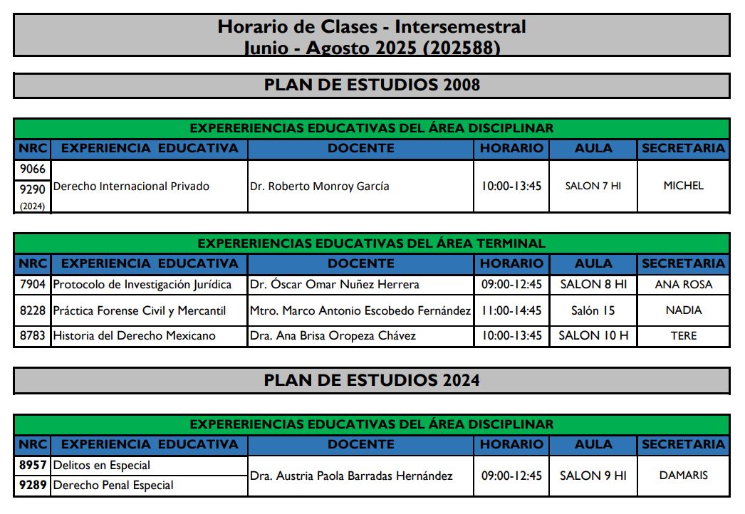 HORARIO DE CLASES INTERSEMESTRALES VERANO 2025 Formato de inscripción – intersemestral Horario de Clases – Intersemestral 202588-con Secretaria