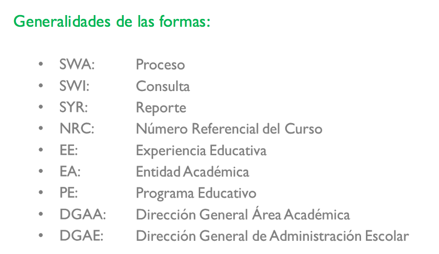 | Actas complementarias | SWAINEX | Configurar actas complementarias. Se elige esta opción si el alumno no estaba inscrito al curso, por lo tanto no sale en el acta original |