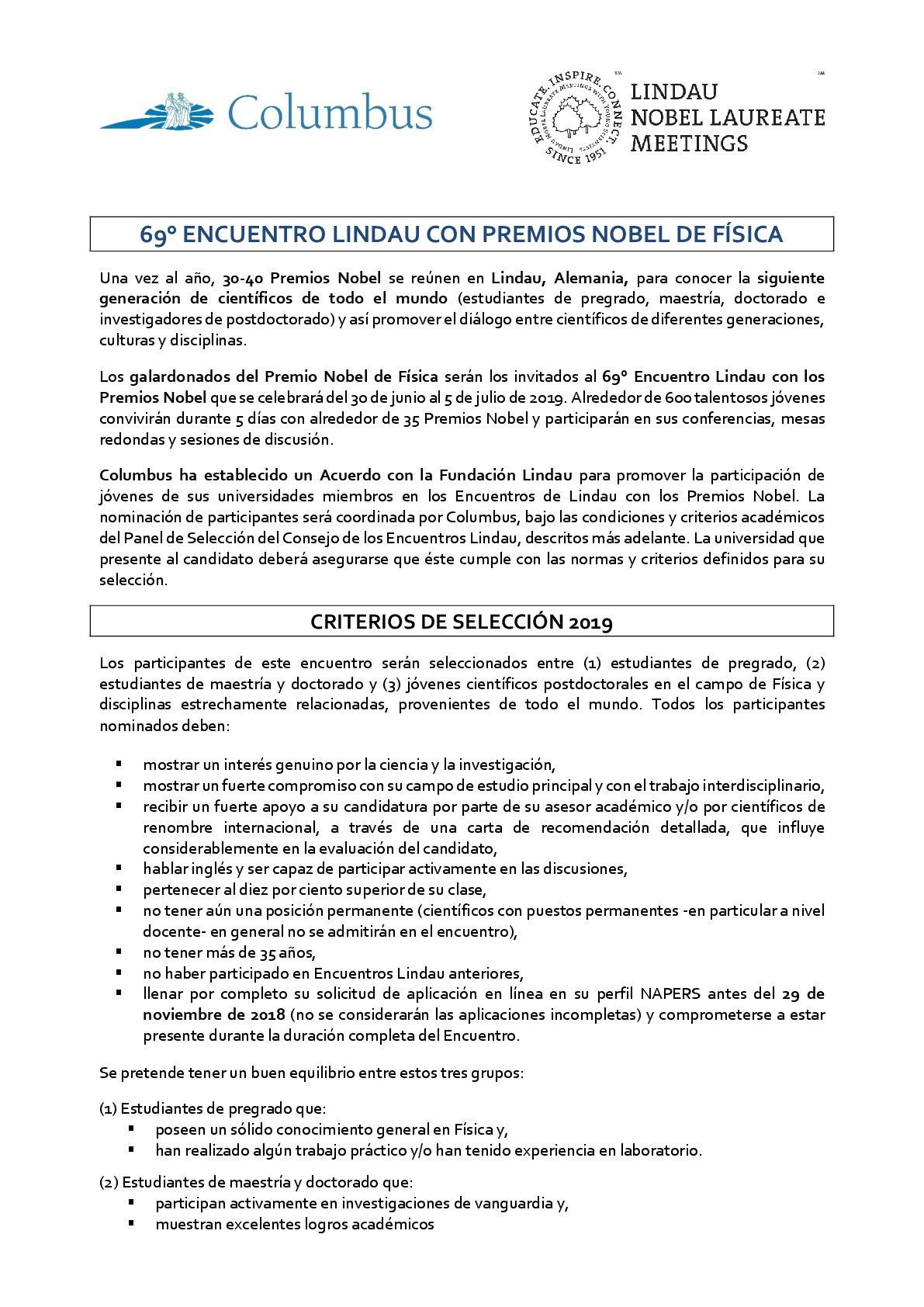 Convocatoria al 69° Encuentro Lindau con Premios Nobel de Física