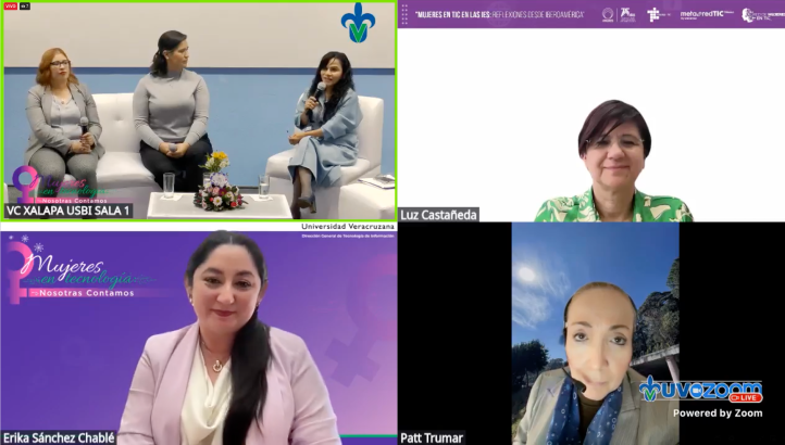 Finalmente, el conversatorio “Mujeres en movimiento: compartiendo historias de vida personal y profesional”, moderado por la Mtra. González Cruz, reunió a destacadas profesionales del sector tecnológico, quienes compartieron sus experiencias y reflexiones sobre los desafíos y oportunidades en el ámbito. Participaron de manera remota la Mtra. Erika Sánchez Chablé, Coordinadora de la Red de Mujeres en TIC del Comité ANUIES-TIC; la Dra. Patricia Trujillo Mariel; y la Mtra. Luz María Castañeda de León, Coordinadoras del Grupo de Gobierno de TI de ANUIES-TIC y MetaRed México. De manera presencial, estuvieron la Mtra. Viridiana Arzola Huerta, Channel Account Manager en Fortinet, y Karla Stephany Pérez Rodríguez, Gerente de Respuesta a Incidentes en Scitum-Telmex. Cada una compartió sus logros y desafíos, inspirando a las asistentes a seguir avanzando en sus carreras tecnológicas.