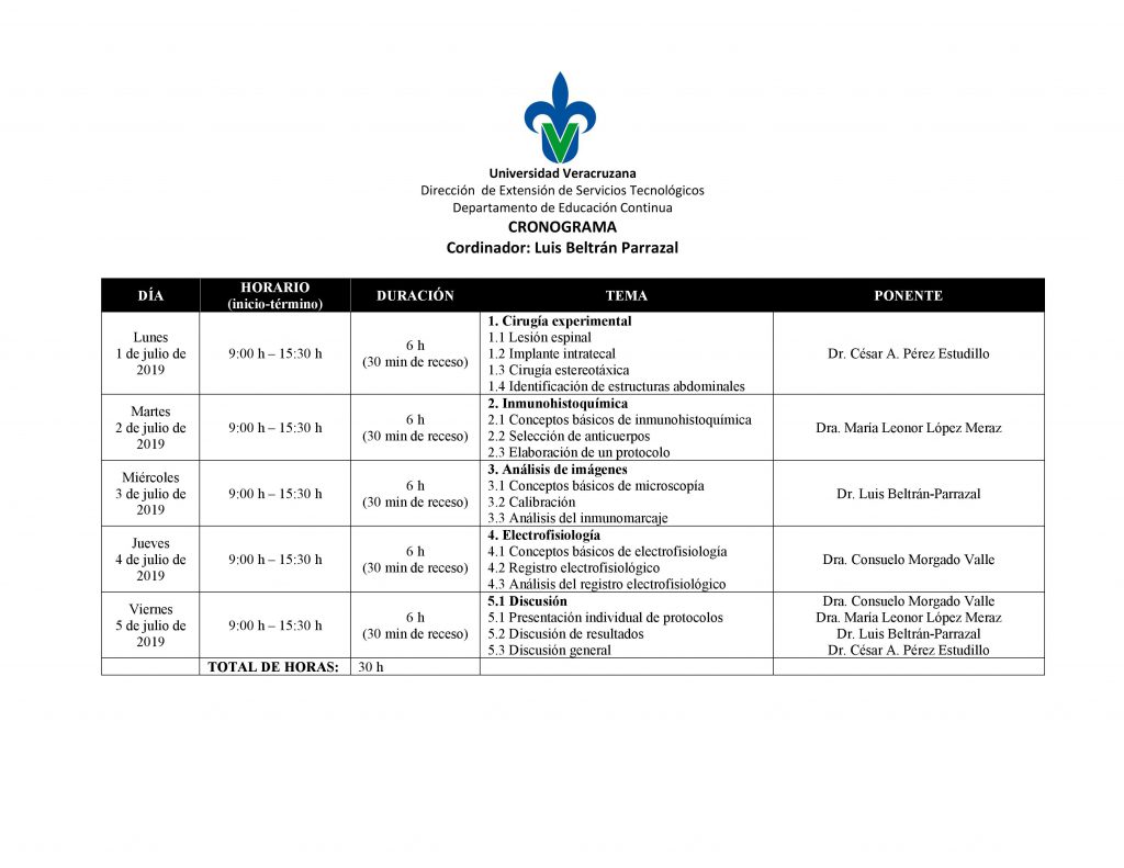 Del 1º al 5 de julio, en horario de 9 a 15:30 horas, este curso tendrá sede en el aula del Doctorado de Investigaciones Cerebrales, que se encuentra ubicada en la Unidad de Ciencias de la Salud, campus Xalapa. Los interesados en participar deberán comunicarse con el Dr. Luis Beltrán Parrazal a a través del correo electrónico: lubeltran@uv.mx