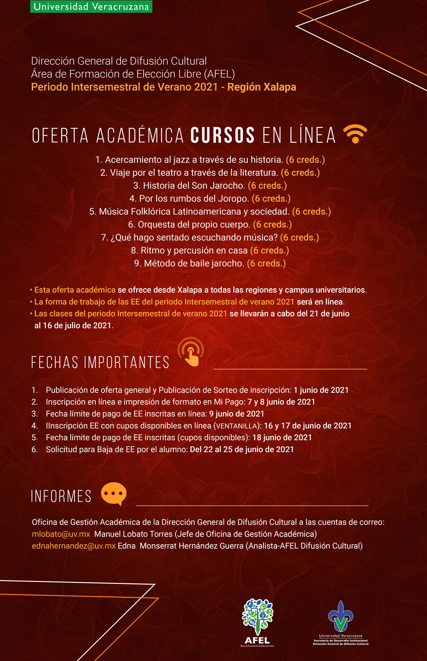 Esta experiencia educativa pertenece al Área de Formación de Elección Libre (AFEL) del Modelo Integral y Flexible (MEIF) y ofrece a los estudiantes un acercamiento a la cultura regional a través del baile jarocho, desde un enfoque basado en competencias, histórico, práctico y vivencial en modalidad de aprendizaje distribuido. Incide en la formación integral del estudiante al brindarle herramientas para desarrollar la apreciación por la cultura tradicional regional, promoviendo en él la reflexión y la sensibilización por la identidad cultural.