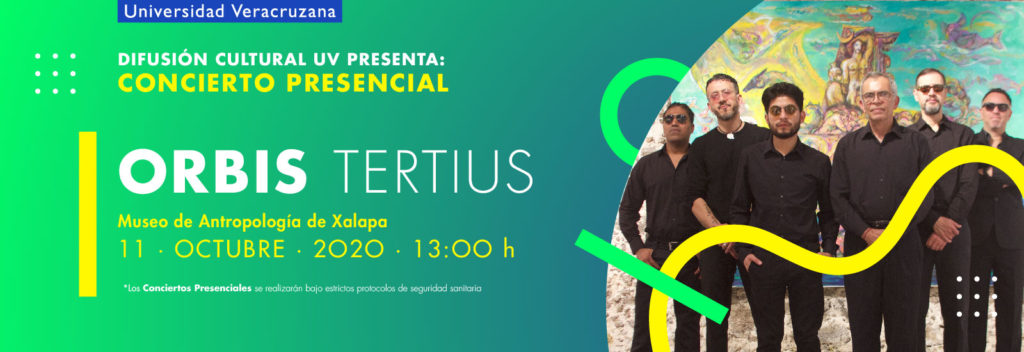 Continuando con la serie de conciertos presenciales frente al retorno seguro a las actividades universitarias, la Dirección General de Difusión Cultural presenta a Orbis Tertius en concierto el próximo 11 de octubre en el Museo de Antropología de Xalapa.