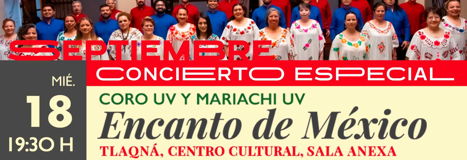 El Coro y Mariachi de la Universidad Veracruzana se complacen en anunciar su próximo evento “Encanto de México”, una celebración vibrante de la música tradicional mexicana que se llevará a cabo el miércoles 18 de septiembre a las 19:30 horas en el Centro Cultural, Tlaqná.